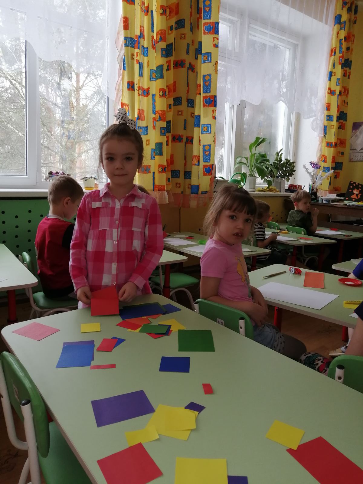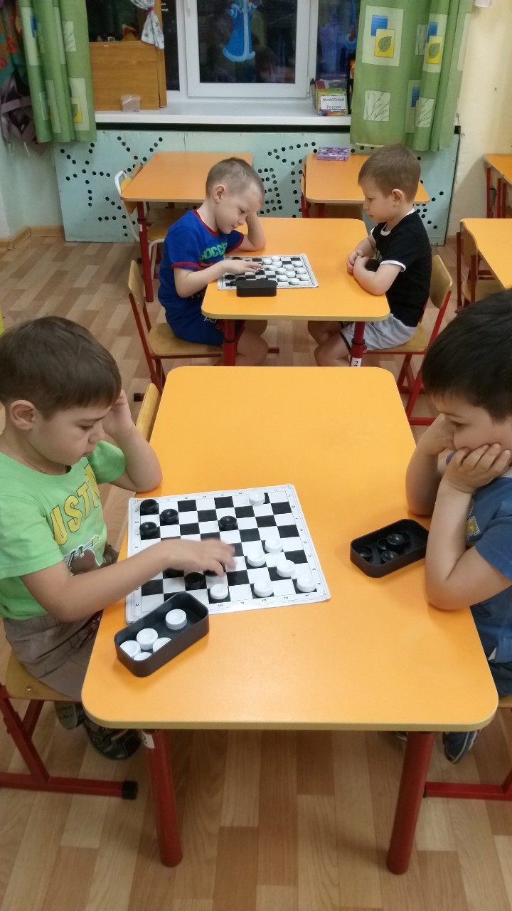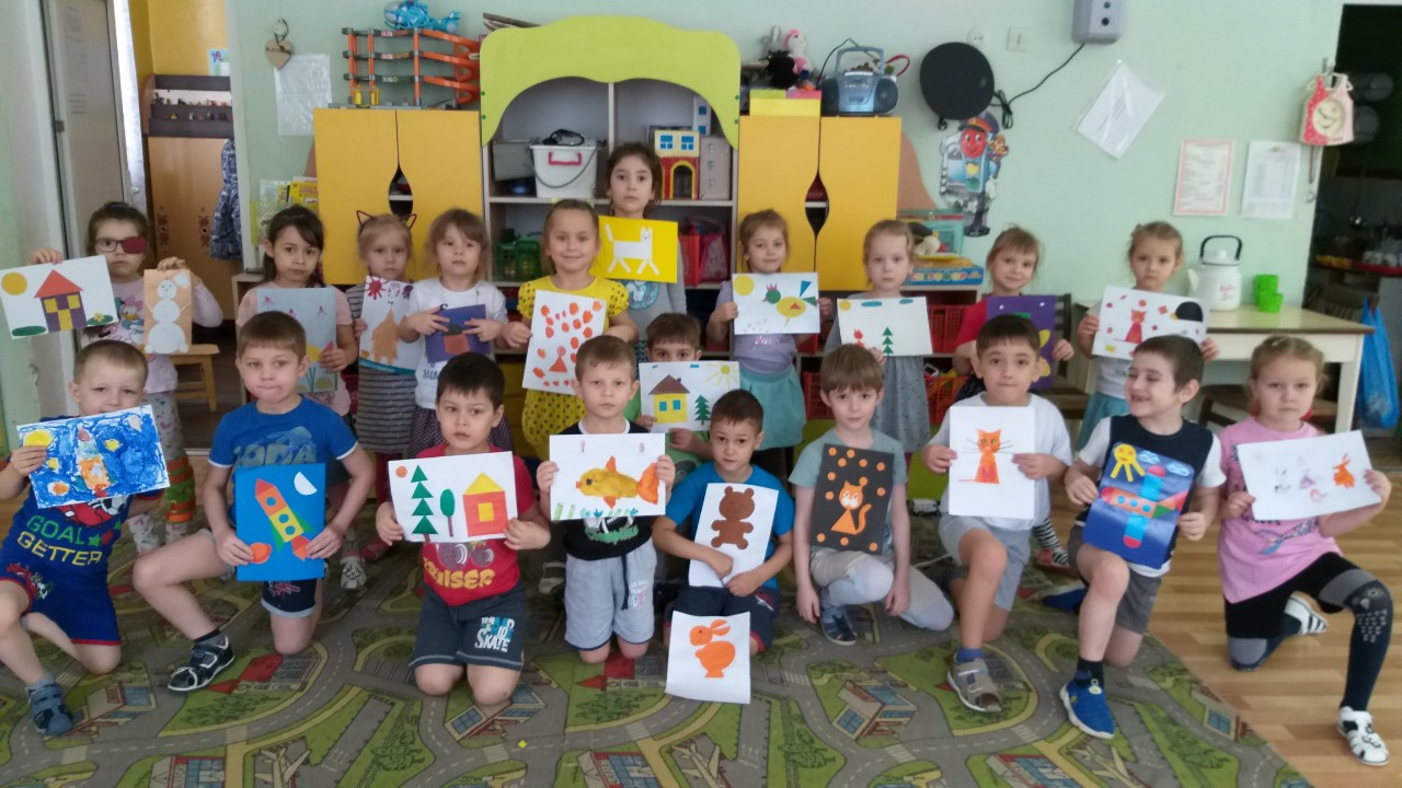 В старшей группе №2 «Пчелки» итоговым мероприятием стала совместная аппликация из геометрических фигур, шашечный турнир.