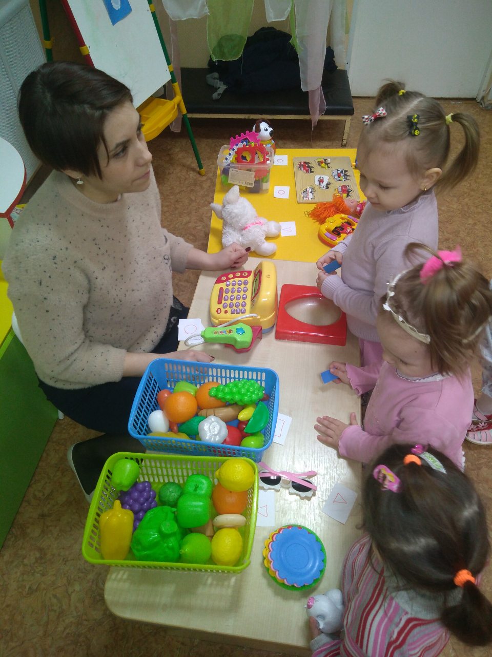 В младшей группе «Капельки» ребята с удовольствием играли в сюжетную игру - магазин. На закрепление геометрических фигур и знакомство с финансовой грамотностью.
