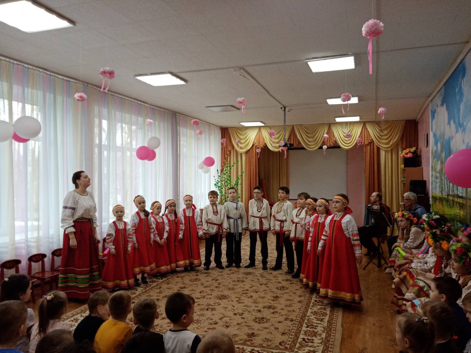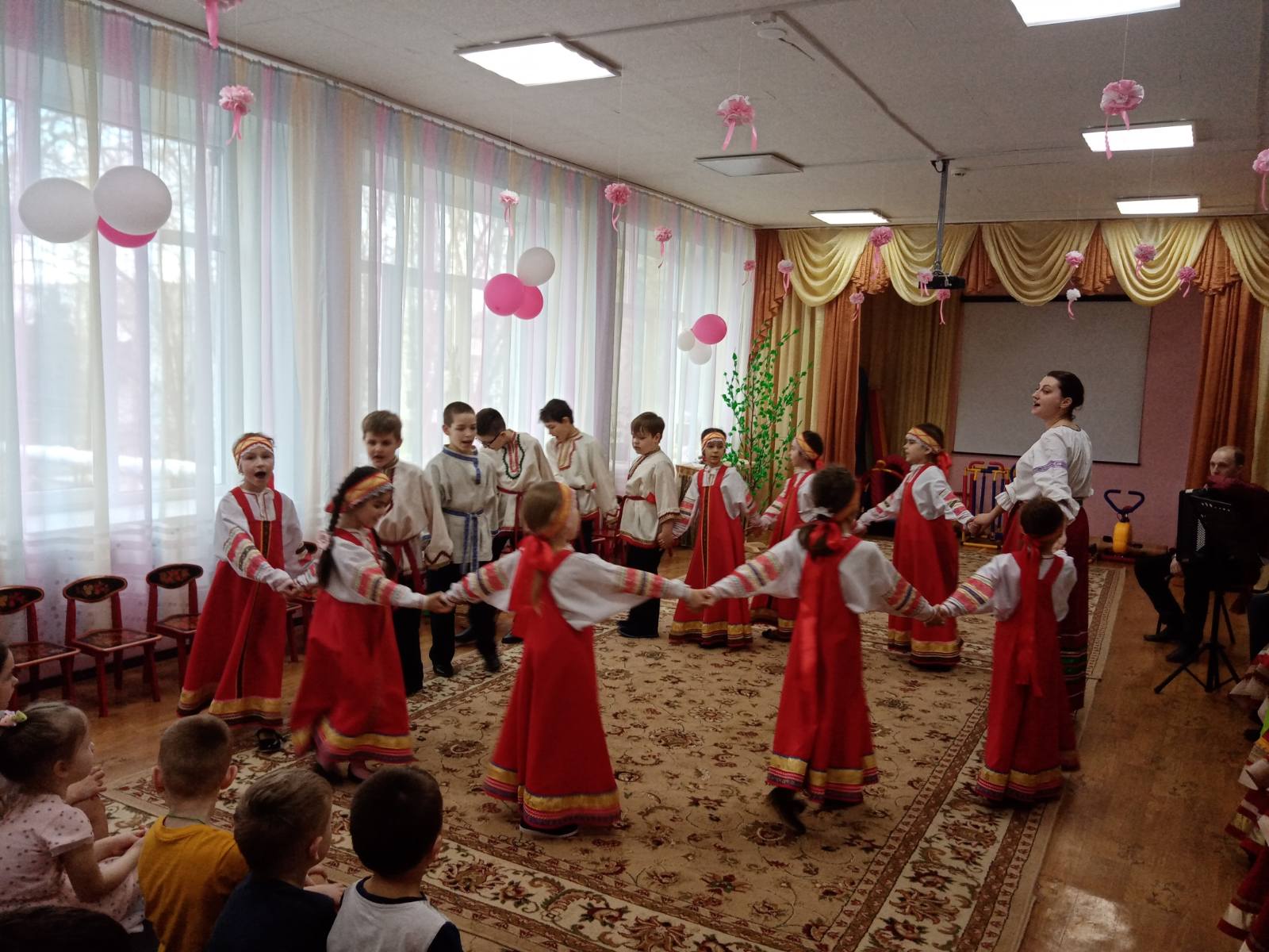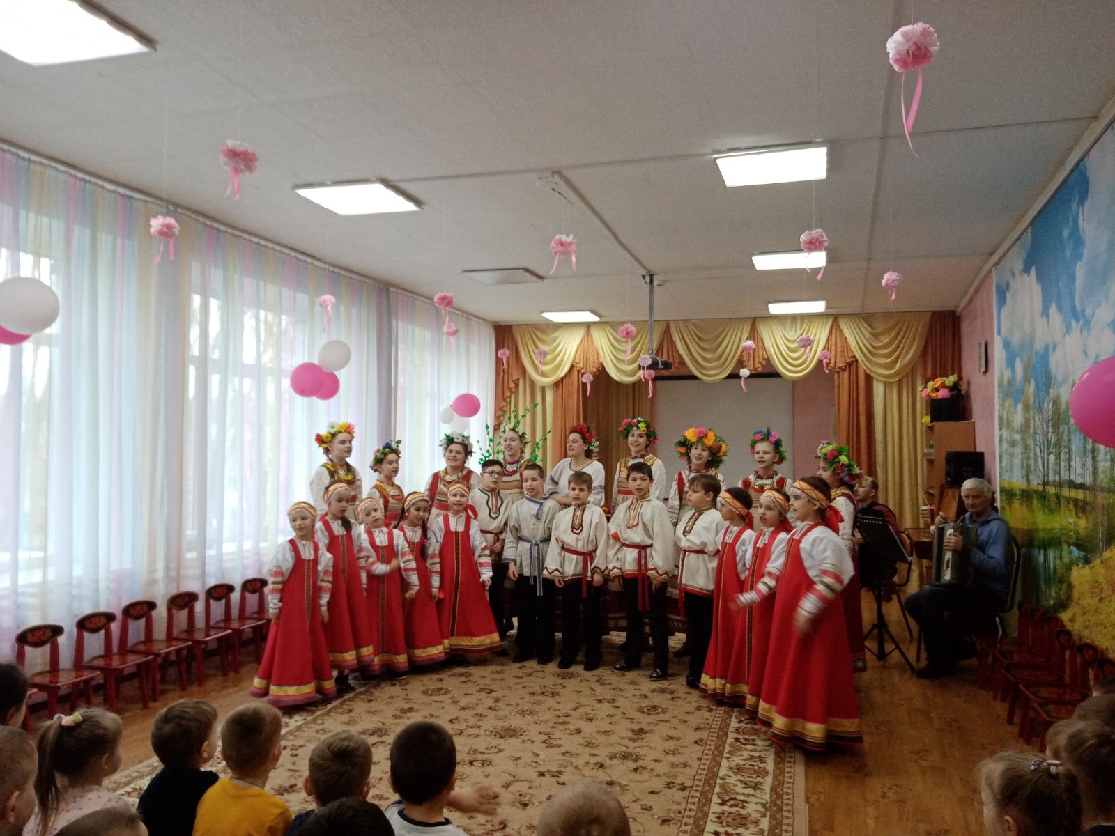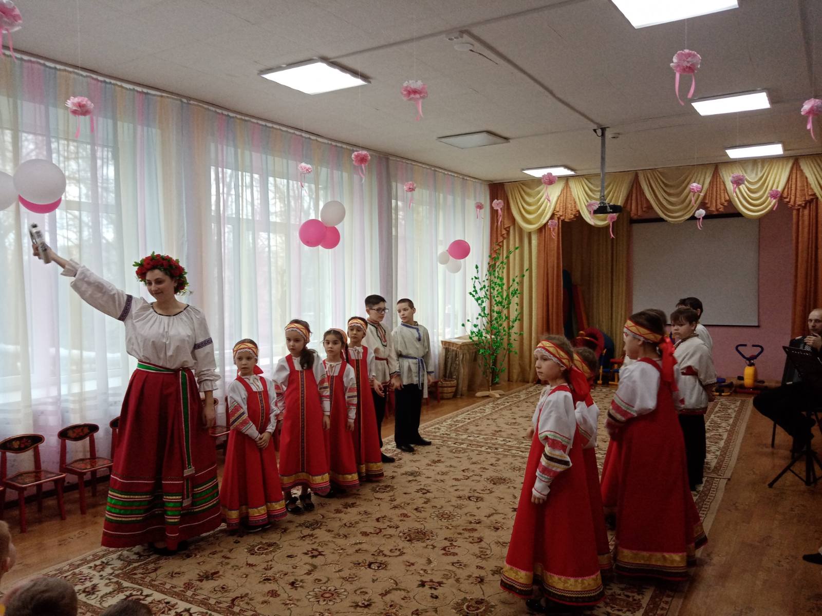 12 марта 2020 года в рамках тематической недели «Народная культура и традиции» и в соответствии с планом взаимодействия МБДОУ и Ставровской детской музыкальной школы прошла интересная встреча воспитанников детского сада с народным ансамблем детской музыкальной школы. Вниманию маленьких зрителей была представлена разнообразная программа, включающая русские народные песни, хороводы, танцы, игры, обряды, музыкальные сценки. Преподаватели с учащимися музыкальной школы познакомили наших воспитанников с миром прекрасного, подарили детям необыкновенное путешествие в мир русской культуры. Воспитанники активно подпевали учащимся, бурно аплодировали.