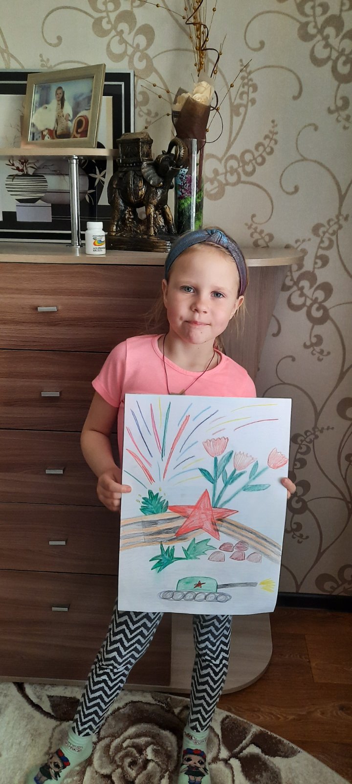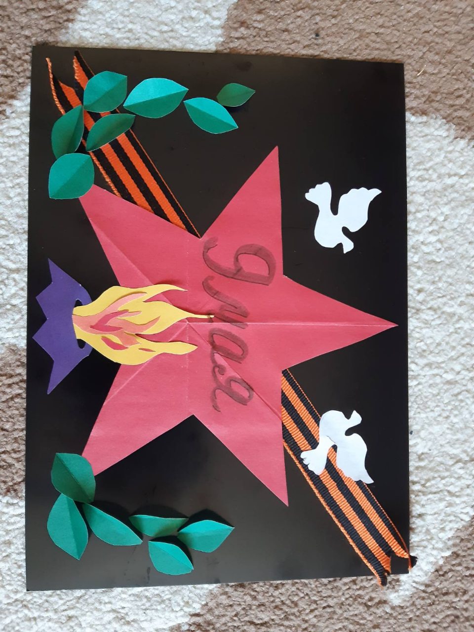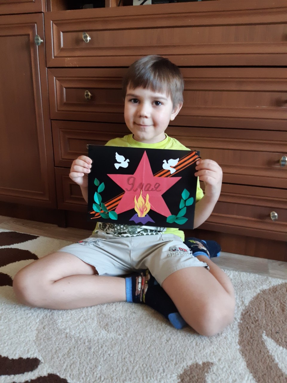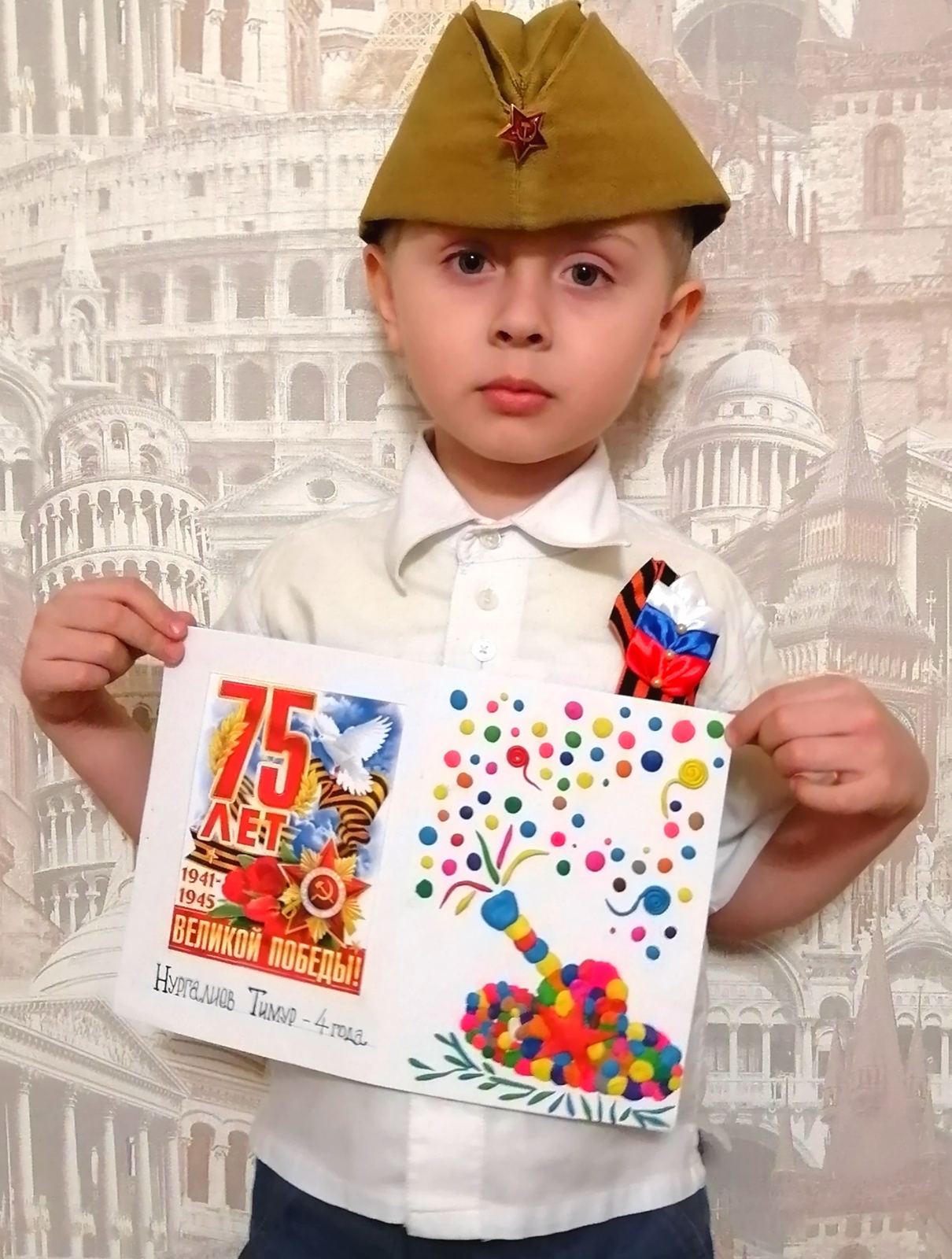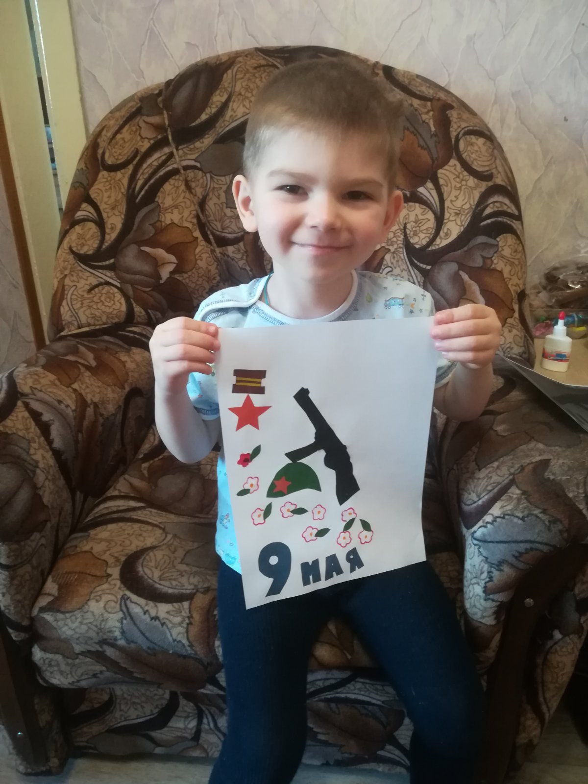 Родители с ребятами читали различные рассказы о подвигах солдат, женщин и детей в годы войны. Смотрели мультфильмы, презентации на военную тематику и хронику военных лет, беседовали о войне, слушали музыку военных лет, рассматривали иллюстрации, посвященные ВОВ и Дню Победы. Ребятам понравились дидактические игры «Наша армия сильна, охраняет мир она», «Подбери картинку», «Что нужно солдату, моряку, пограничнику, лётчику», «Чья форма?», «Военная техника», «Роды войск», «Что, для чего?» и др. Занимались продуктивной деятельностью: рисовали рисунки про войну, лепили военную технику. Делали с помощью аппликации красные гвоздики и георгиевские ленточки. Разучивали стихотворения, песни, пословицы и поговорки о чести, долге, солдатской службе, дружбе, товариществе и о нашей славной, долгожданной Победе.