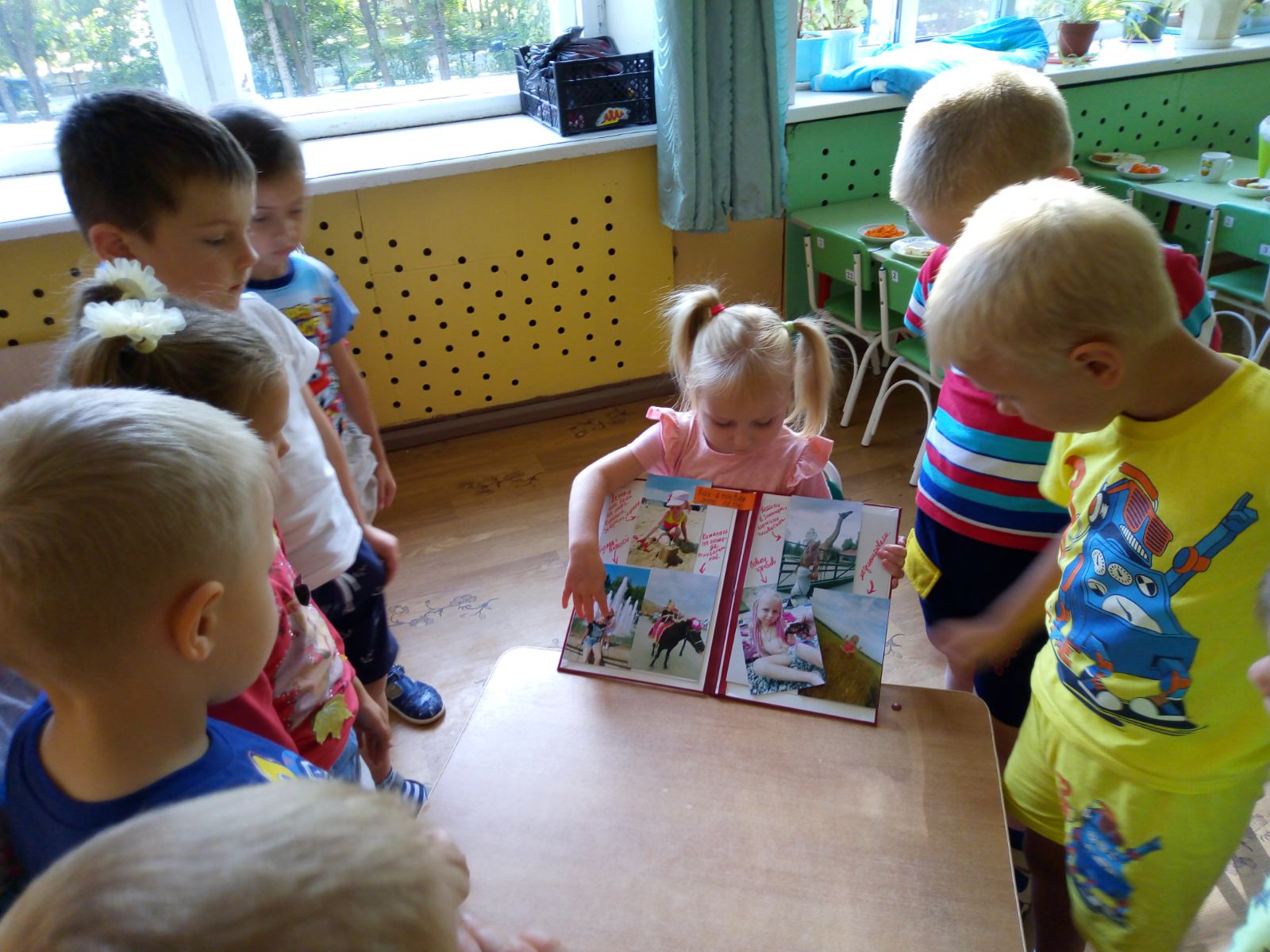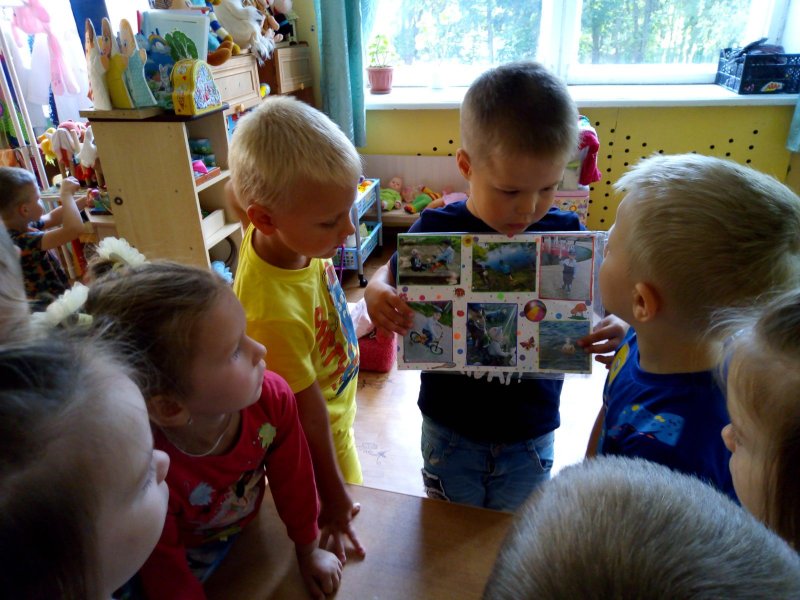 В группе каждый ребенок рассказал по фото о своих впечатлениях, полученных летом, и все с интересом слушали рассказы своих друзей.