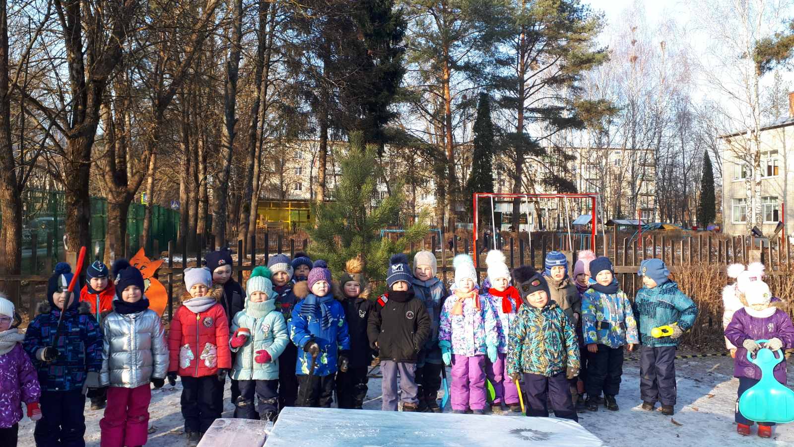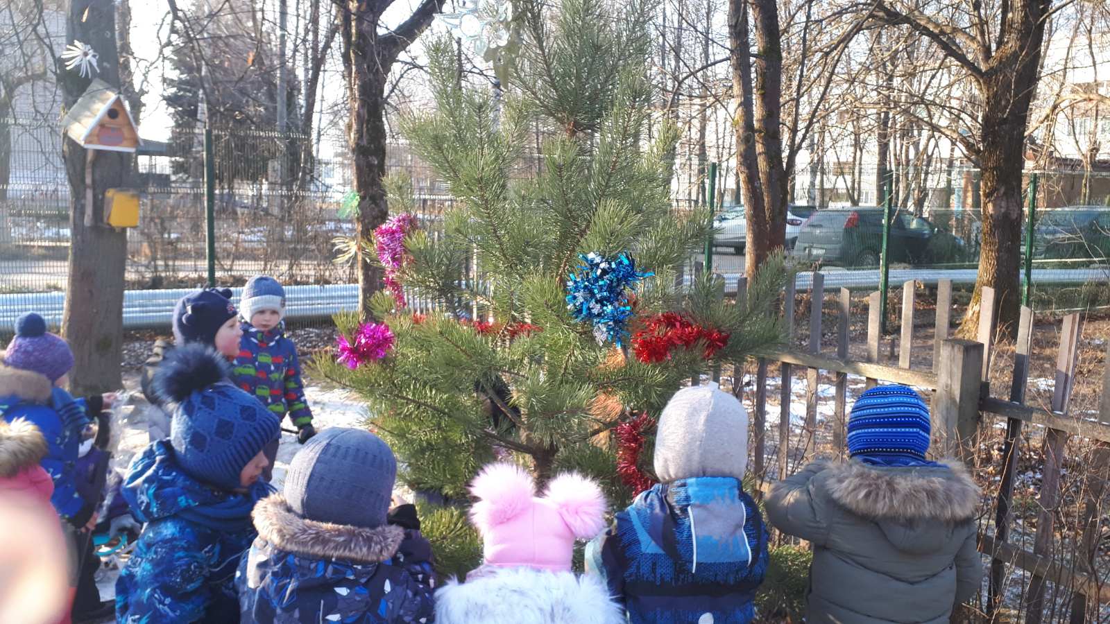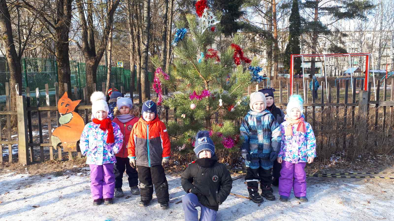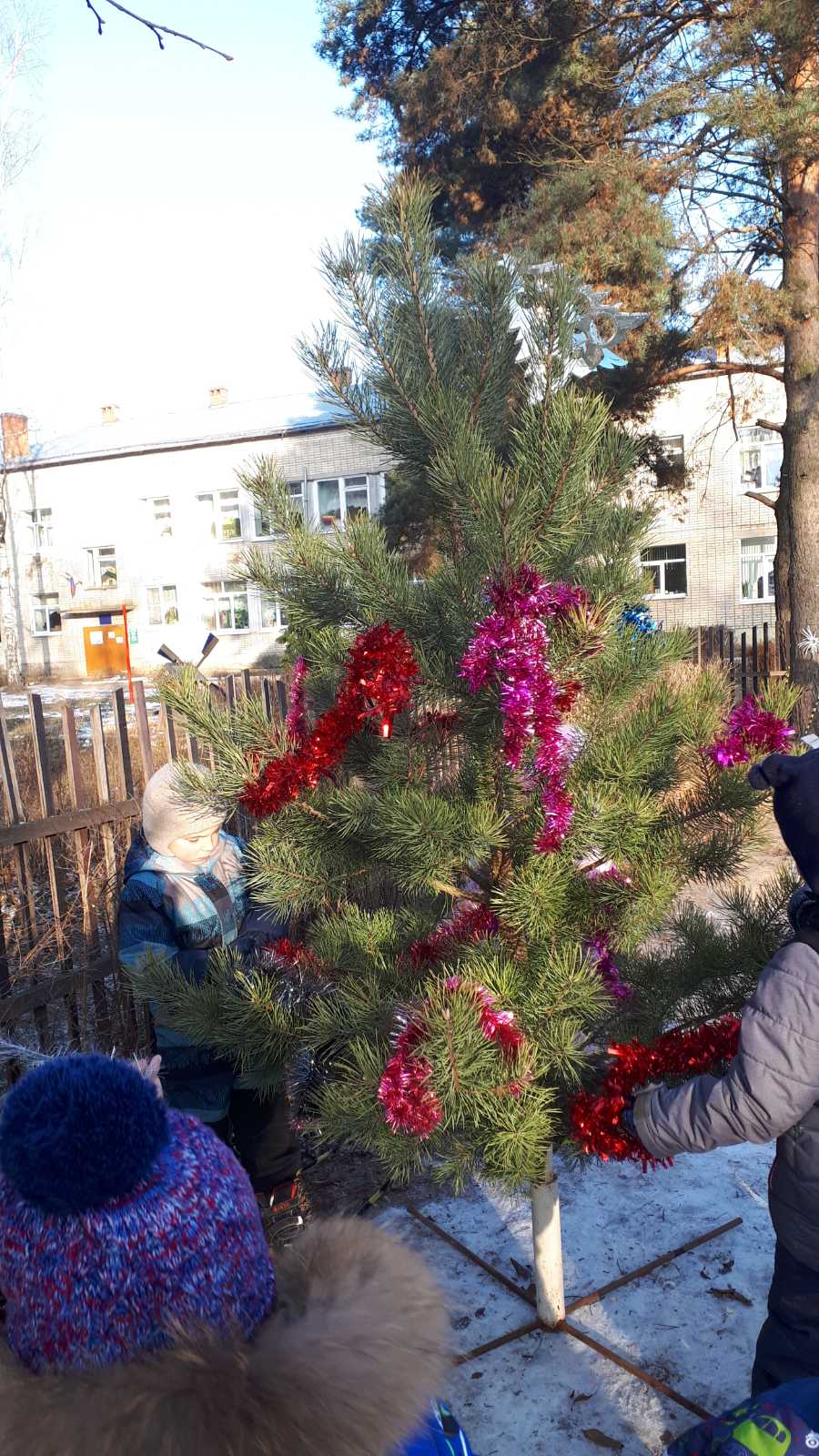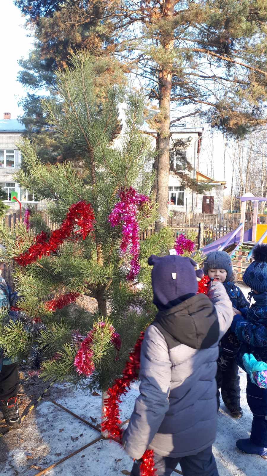 Снега нет, но мы не унываем. В предвкушении встречи с Дедом Морозом ребята старшей группы нарядили ёлку на улице.