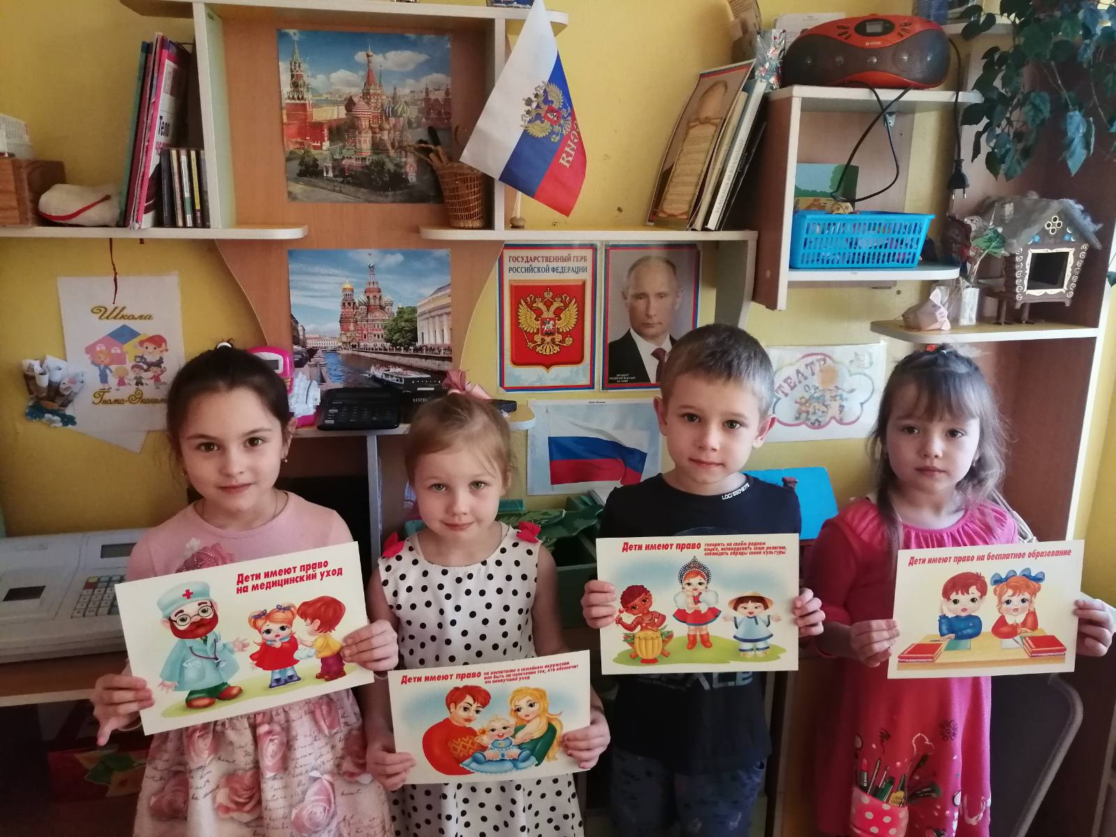 В связи с этой датой в детском саду проведены тематические беседы «12 декабря - День Конституции», «Права ребёнка», «Государственные символы России», организован показ презентации «Конституция Российской Федерации - основной закон России». Дети познакомились с некоторыми правами: право на труд, право на отдых, право на медицинское обслуживание, право на образование и др.