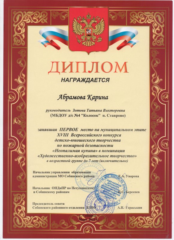 на муниципальном этапе ХVIII Всероссийского конкурса детско - юношеского творчества по пожарной безопасности " Неопалимая купина"