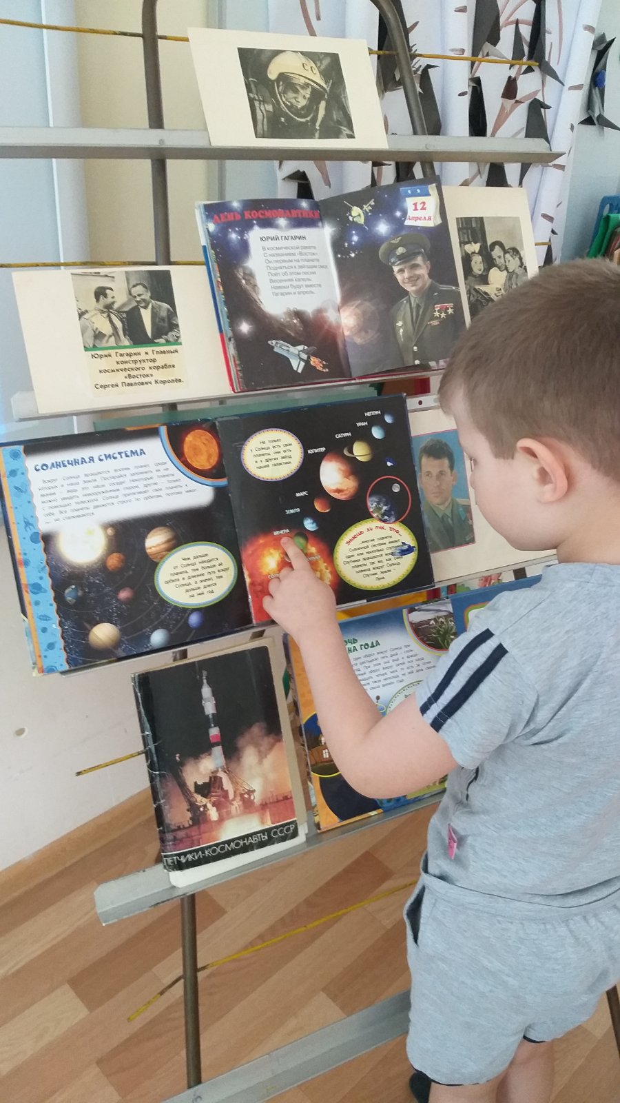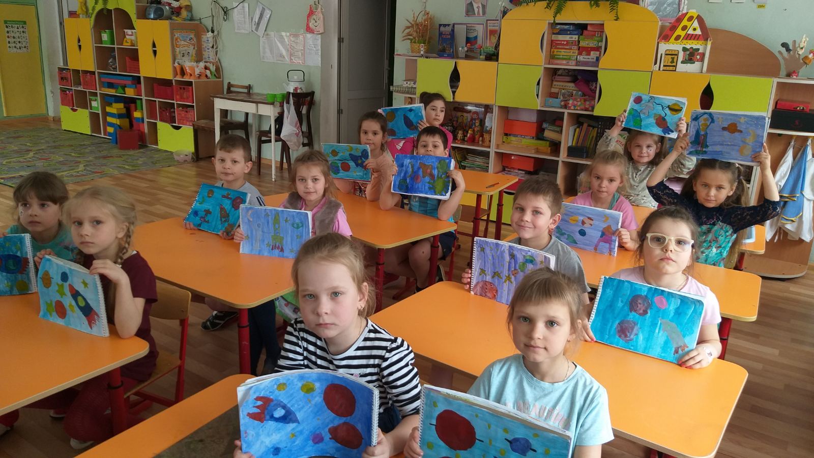 В нашем детском саду прошла тематическая неделя, посвящённая Дню космонавтики. Воспитанники со своими воспитателями в течение недели знакомились с информацией о первом полете человека в космос и о космосе в целом.