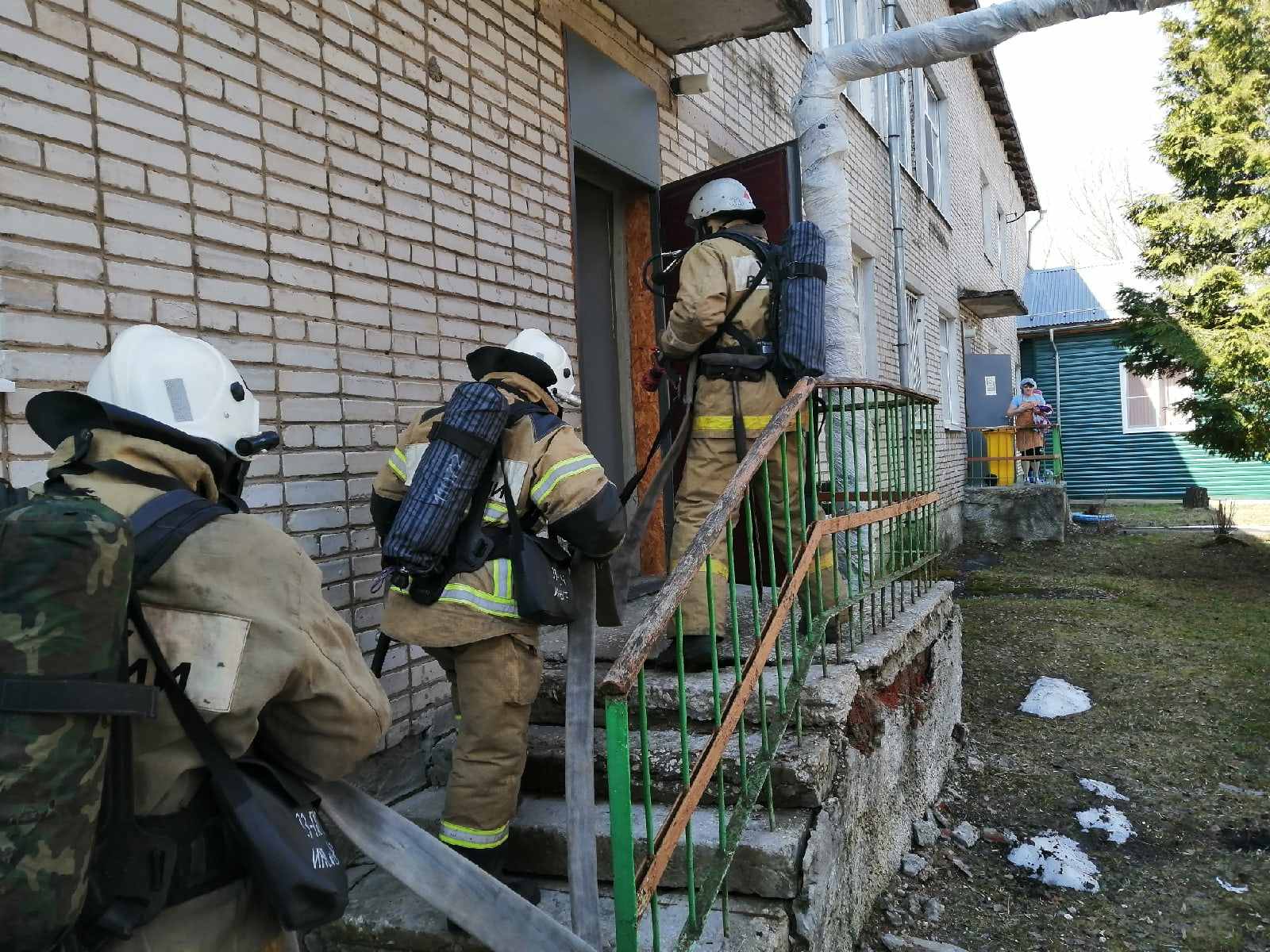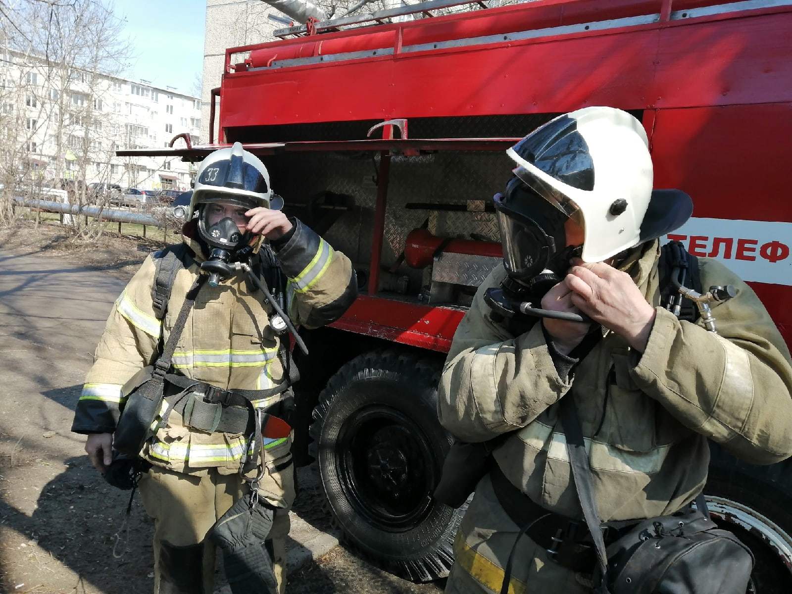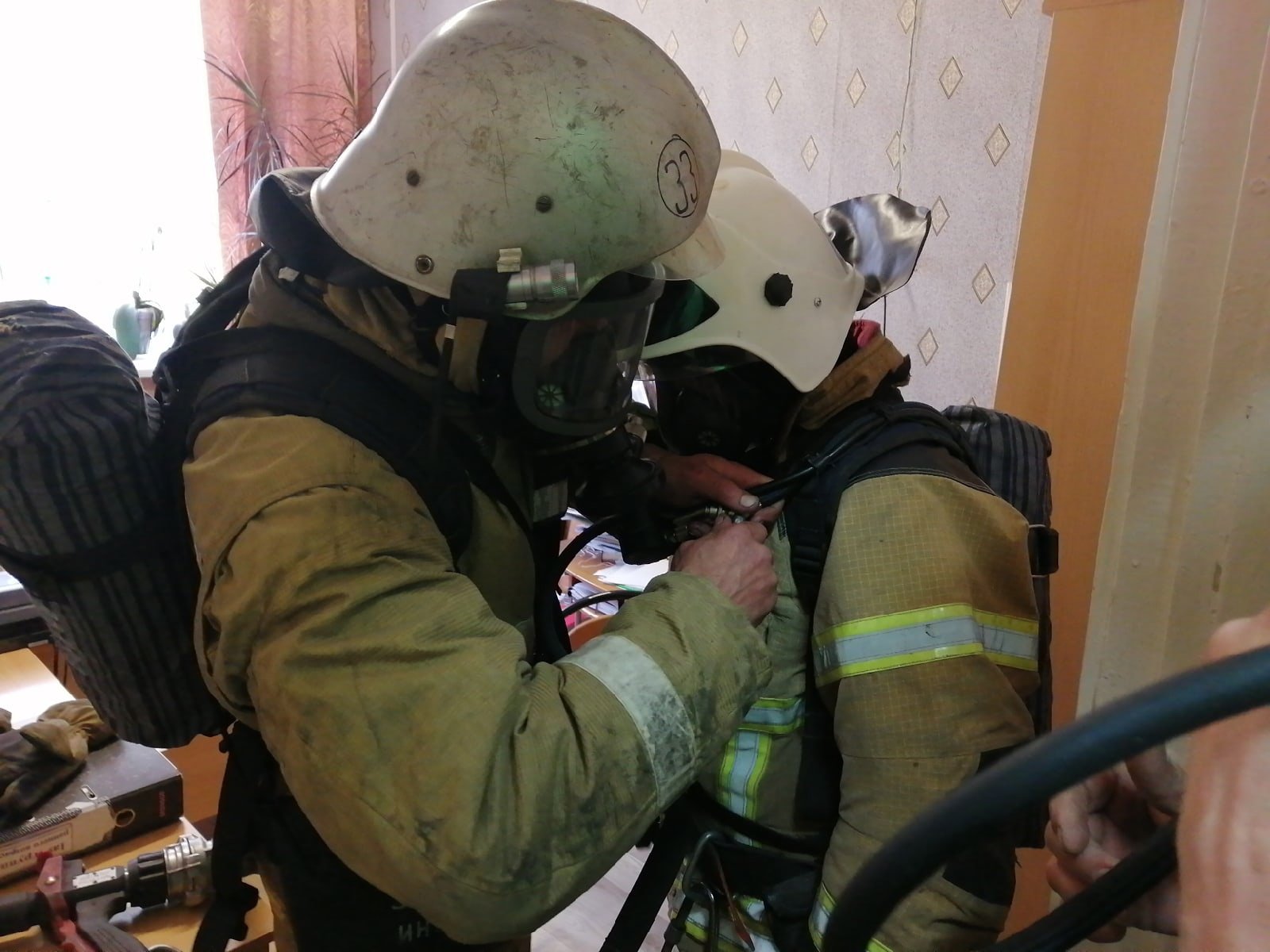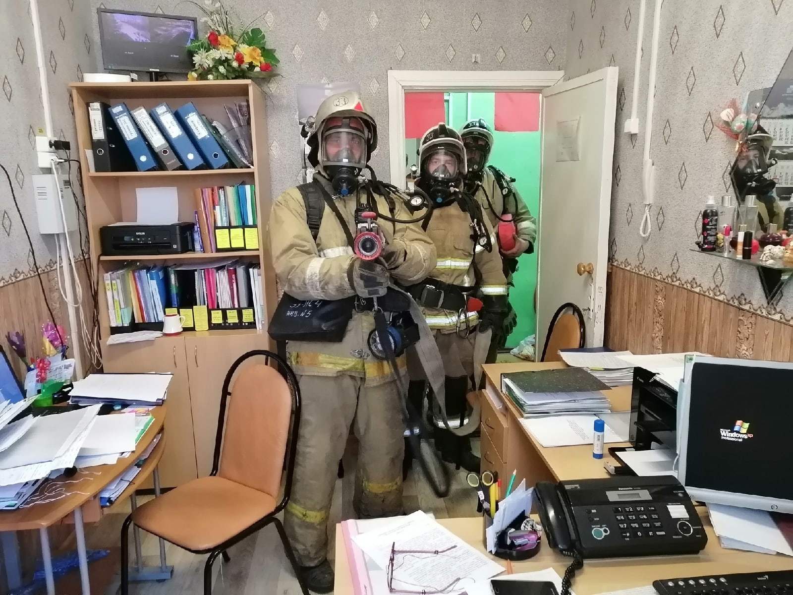 Прибывшие пожарные сформировали звено газодымозащитной службы и отправились на поиски очага возгорания. Горение происходило на втором этаже (условно). Подав ствол на тушение, пожар был ликвидирован. Дополнительно была отработана вводная по оказанию помощи пожарному, у которого закончился воздух в дыхательном аппарате.