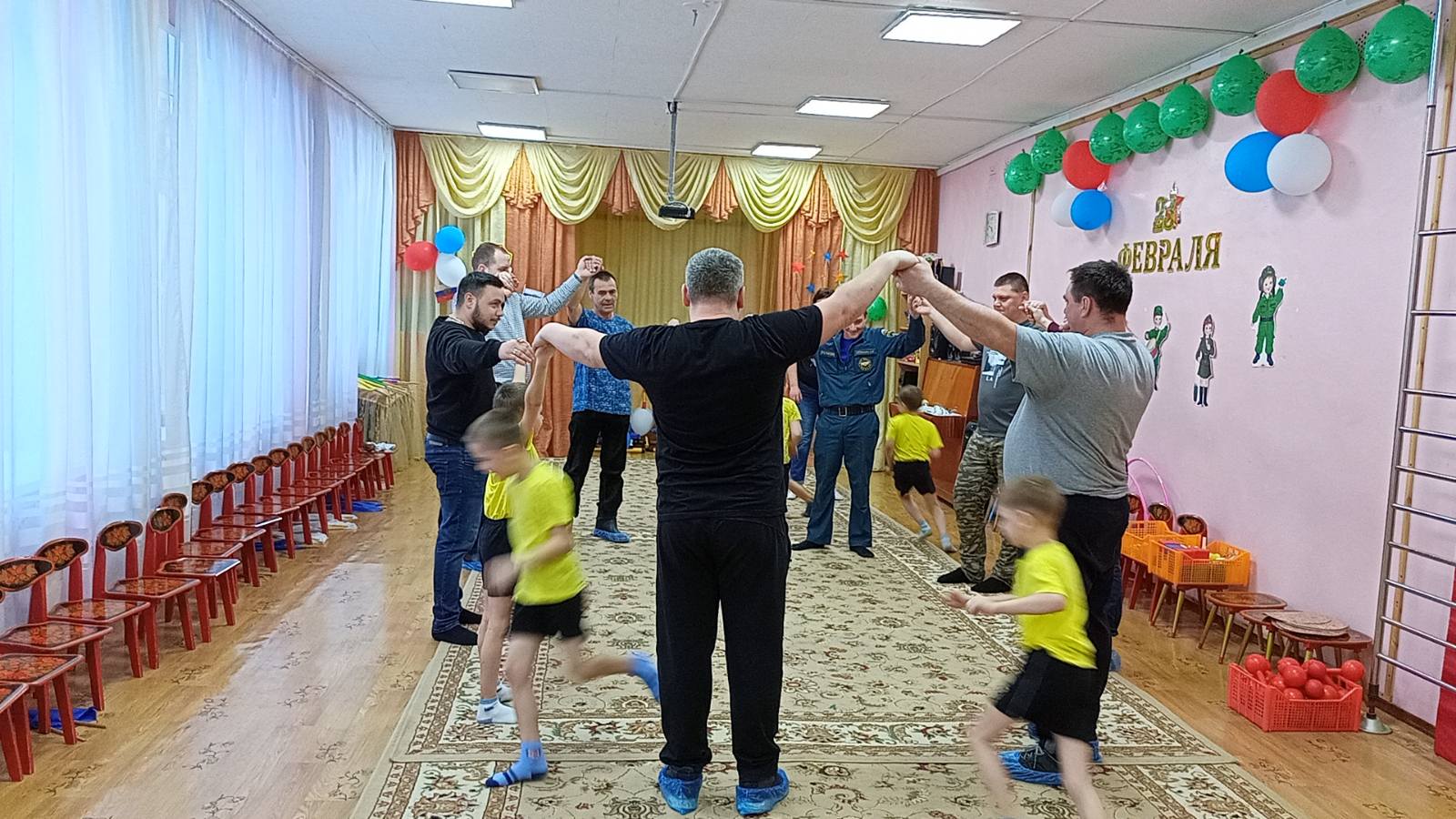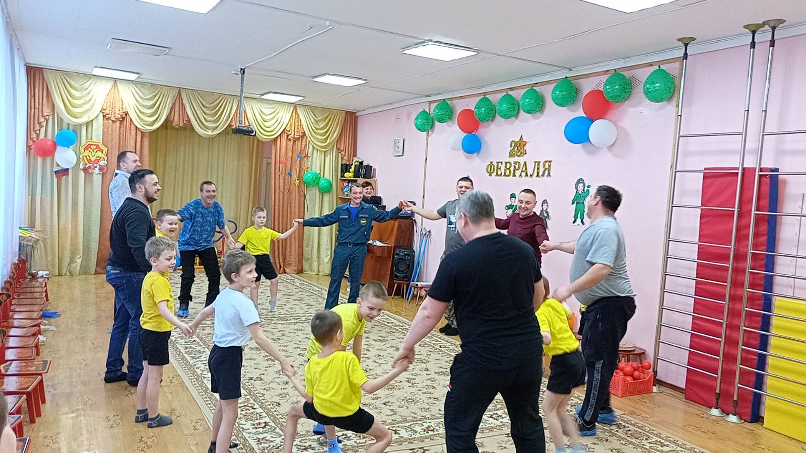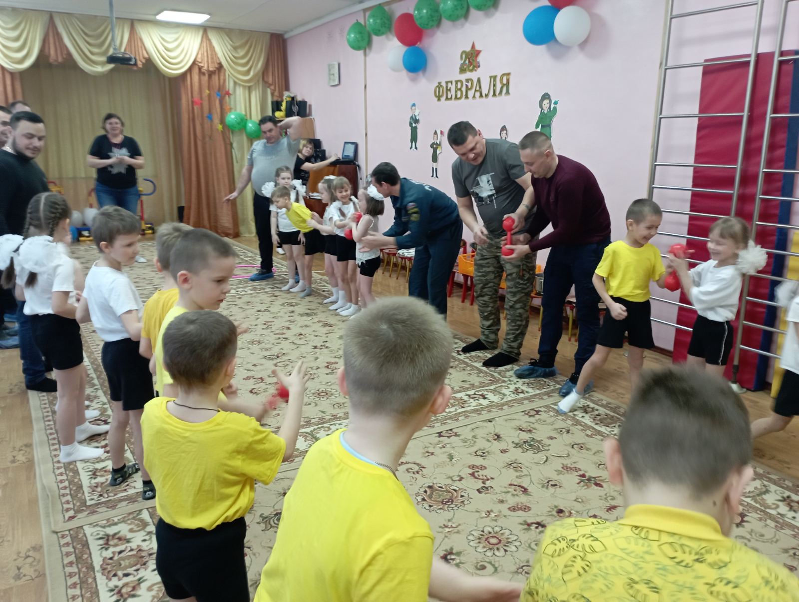 В младшей и средней группах ребята готовили музыкальную открытку-поздравление. В старшей группе ребята пригласили своих пап на праздничный концерт. В преддверии праздника в подготовительных группах состоялись музыкально-спортивные развлечения, посвященные Дню Защитника Отечества. Ребята выполняли военные перестроения, пели песни, читали стихи, танцевали. Ребята со своими папами показали свою силу, ловкость в различных эстафетах. Все получили эмоциональный заряд, а мальчишки - желание служить в рядах российской армии!