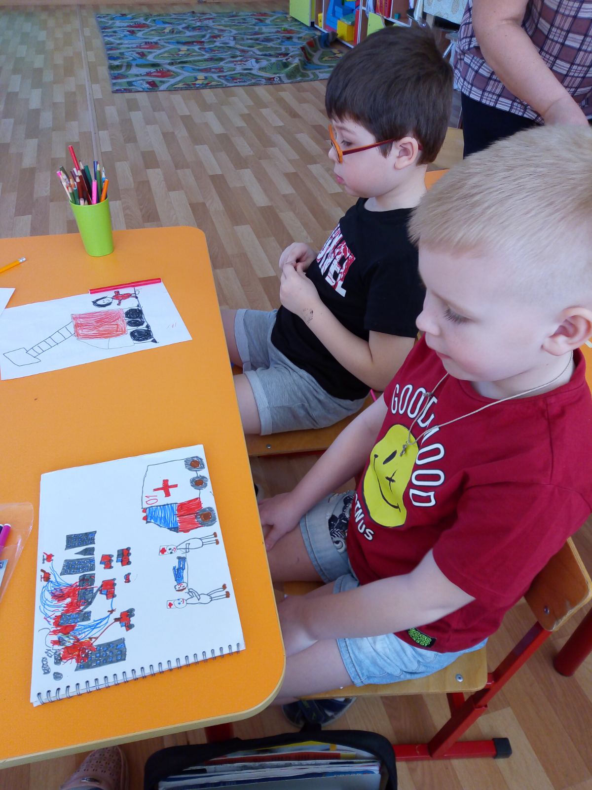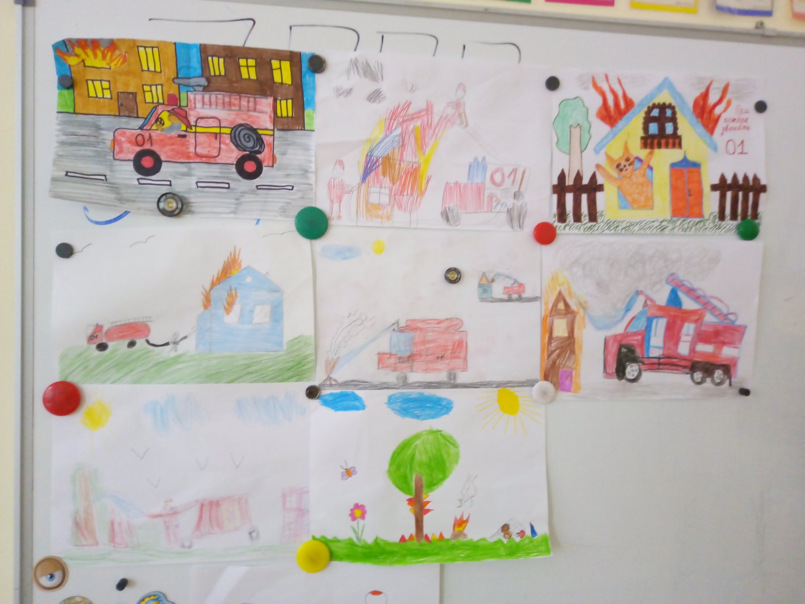 - Выставка рисунков, выполненных детьми старшего возраста по теме «Смелые пожарные»,