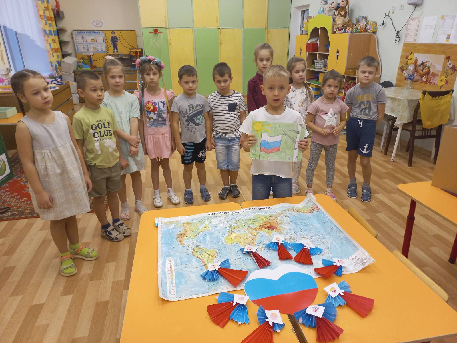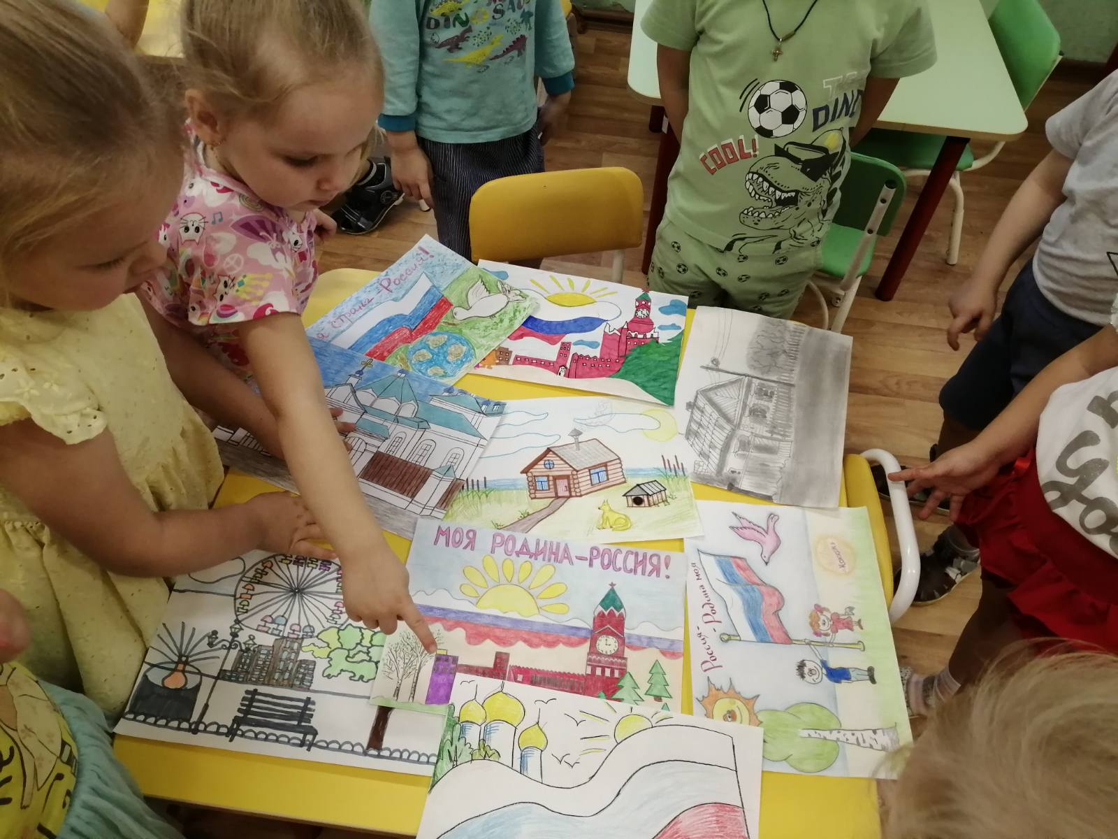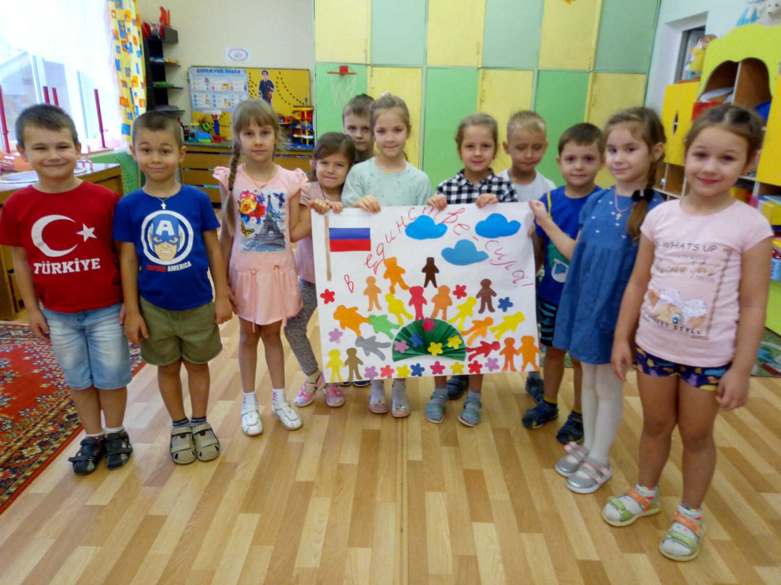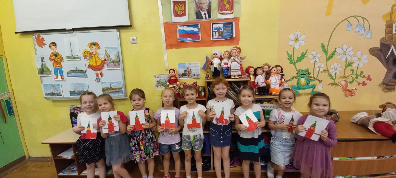 В преддверии праздника "Дня народного единства" в старших группах прошла тематическая неделя "Моя Родина Россия". Дошкольники узнали о том, как велика, красива и богата ресурсами наша страна. Закрепили знания о государственных символах, познакомились с народами населяющими нашу страну, национальными костюмами, обычаями. Выяснили, что сила России в том, что люди разных национальностей живут в стране дружно, и все они одинаково любят свою Родину - Россию. Ребята рассказывали об интересных местах в стране, где они бывали. Рисовали "Русскую матрешку", "Ночное мирное небо в моем поселке", создавали аппликации "Вместе мы едины", конструировали "Кремль", играли в дидактические игры "Достопримечательности Москвы". А так же проведены игры-викторины "Я люблю Россию". Ребята младших групп знакомились с родным посёлком, его названием, основными достопримечательностями, символом России - флагом. Группа "Звездочки" изготовили альбом с помощью родителей "Россия - Родина моя!". А музыкальное развлечение "Во поле берёзка стояла" с настоящими русскими героями в группе "Пчелки", стало ярким завершением недели.