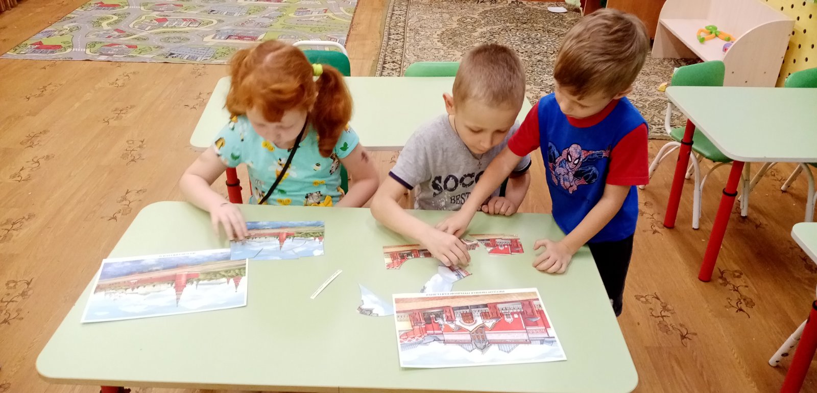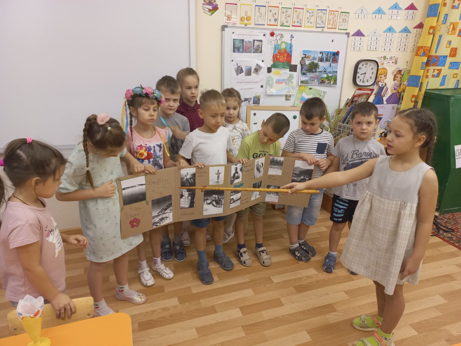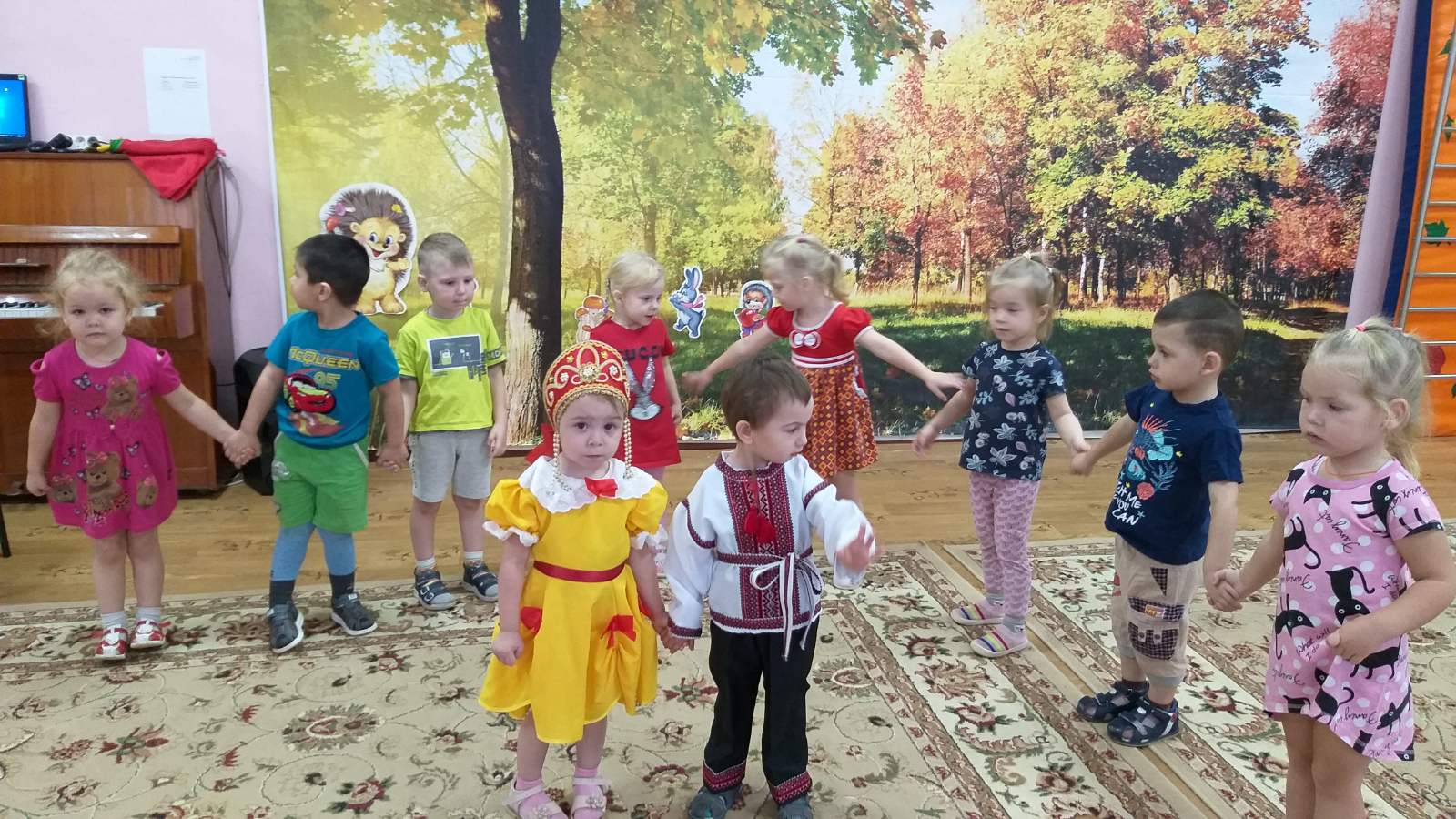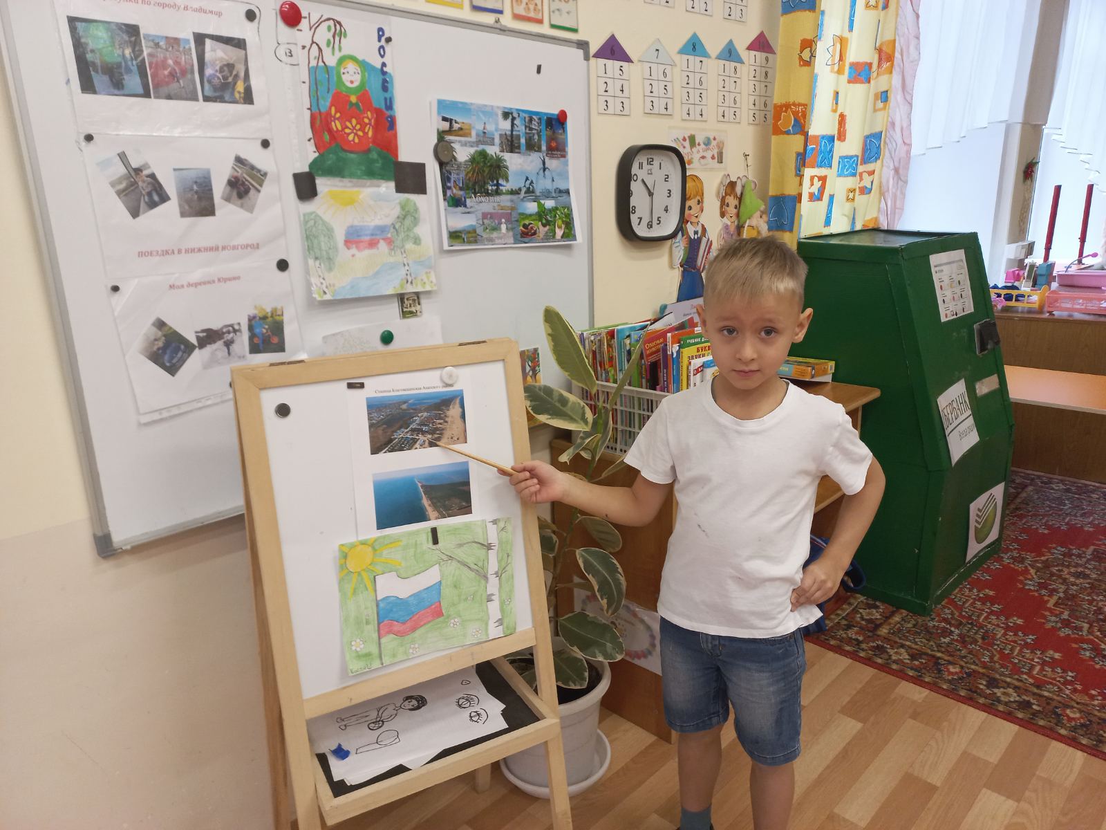 В преддверии праздника "Дня народного единства" в старших группах прошла тематическая неделя "Моя Родина Россия". Дошкольники узнали о том, как велика, красива и богата ресурсами наша страна. Закрепили знания о государственных символах, познакомились с народами населяющими нашу страну, национальными костюмами, обычаями. Выяснили, что сила России в том, что люди разных национальностей живут в стране дружно, и все они одинаково любят свою Родину - Россию. Ребята рассказывали об интересных местах в стране, где они бывали. Рисовали "Русскую матрешку", "Ночное мирное небо в моем поселке", создавали аппликации "Вместе мы едины", конструировали "Кремль", играли в дидактические игры "Достопримечательности Москвы". А так же проведены игры-викторины "Я люблю Россию". Ребята младших групп знакомились с родным посёлком, его названием, основными достопримечательностями, символом России - флагом. Группа "Звездочки" изготовили альбом с помощью родителей "Россия - Родина моя!". А музыкальное развлечение "Во поле берёзка стояла" с настоящими русскими героями в группе "Пчелки", стало ярким завершением недели.