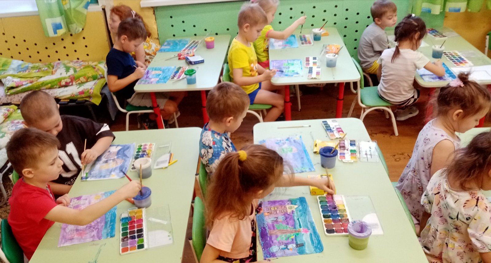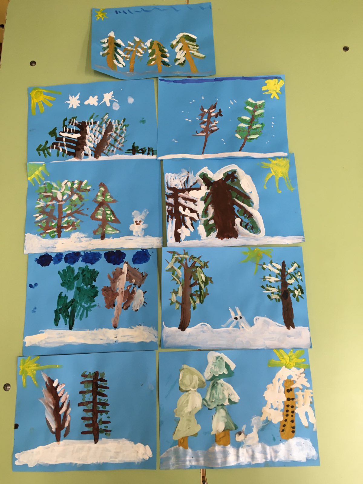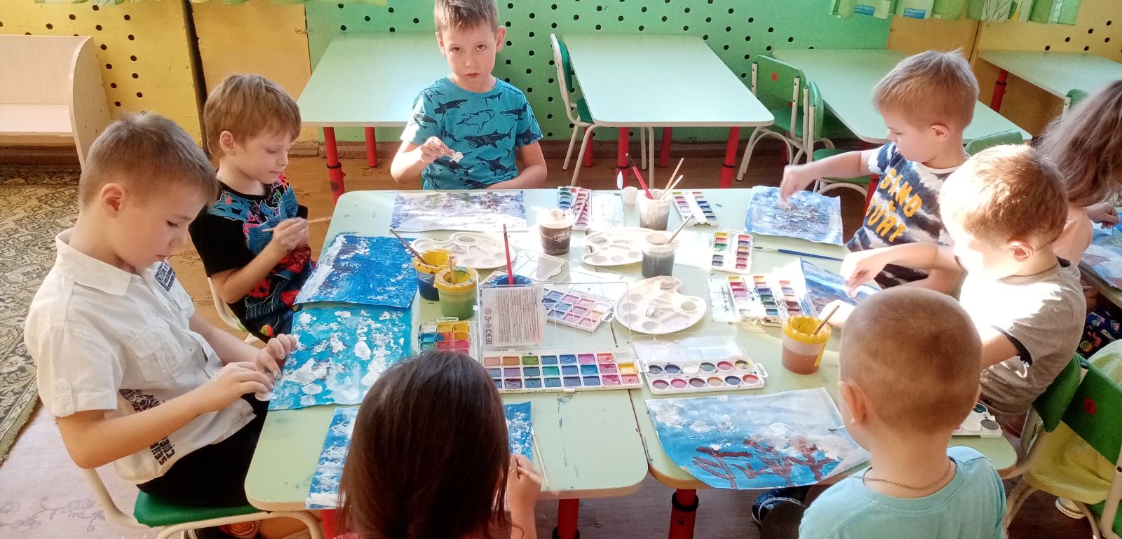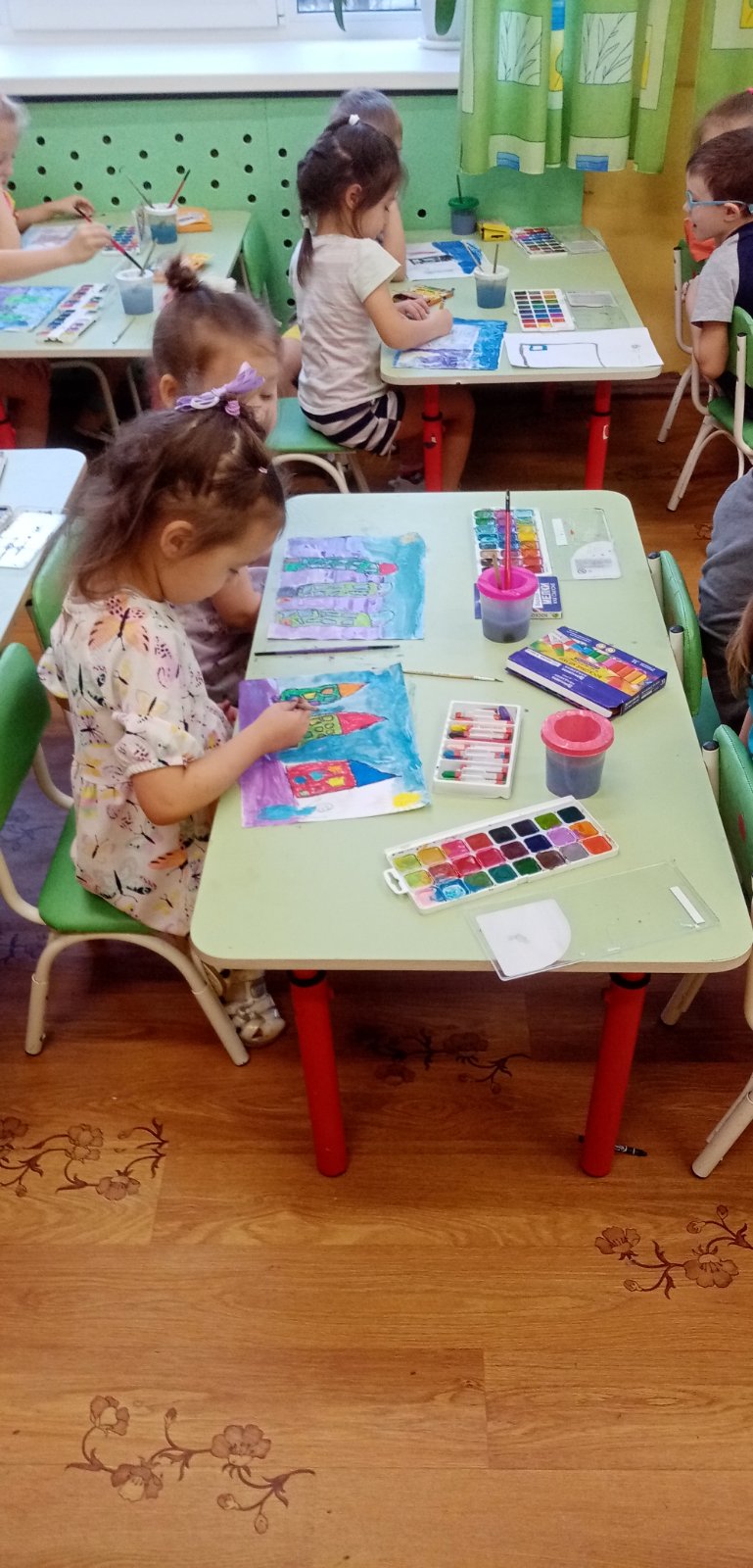 Свои впечатления от встречи с зимой дети отразили в рисунках. Для того чтобы изобразить снег, ребята старшей группы воспользовались нетрадиционным способом - мятой бумагой.