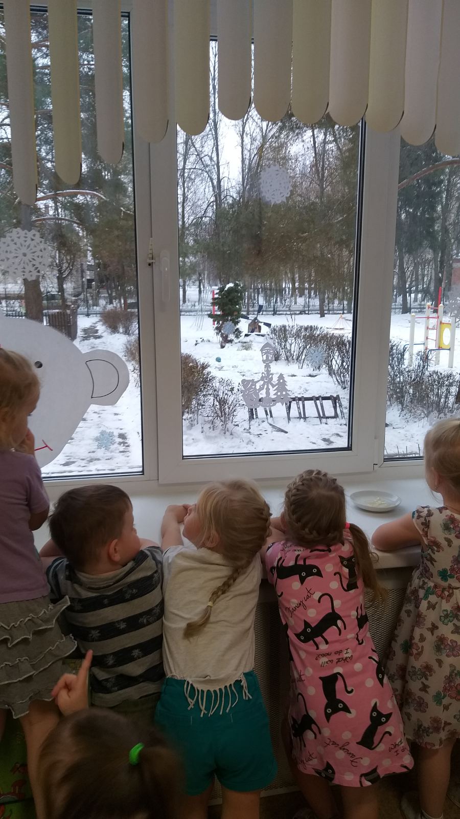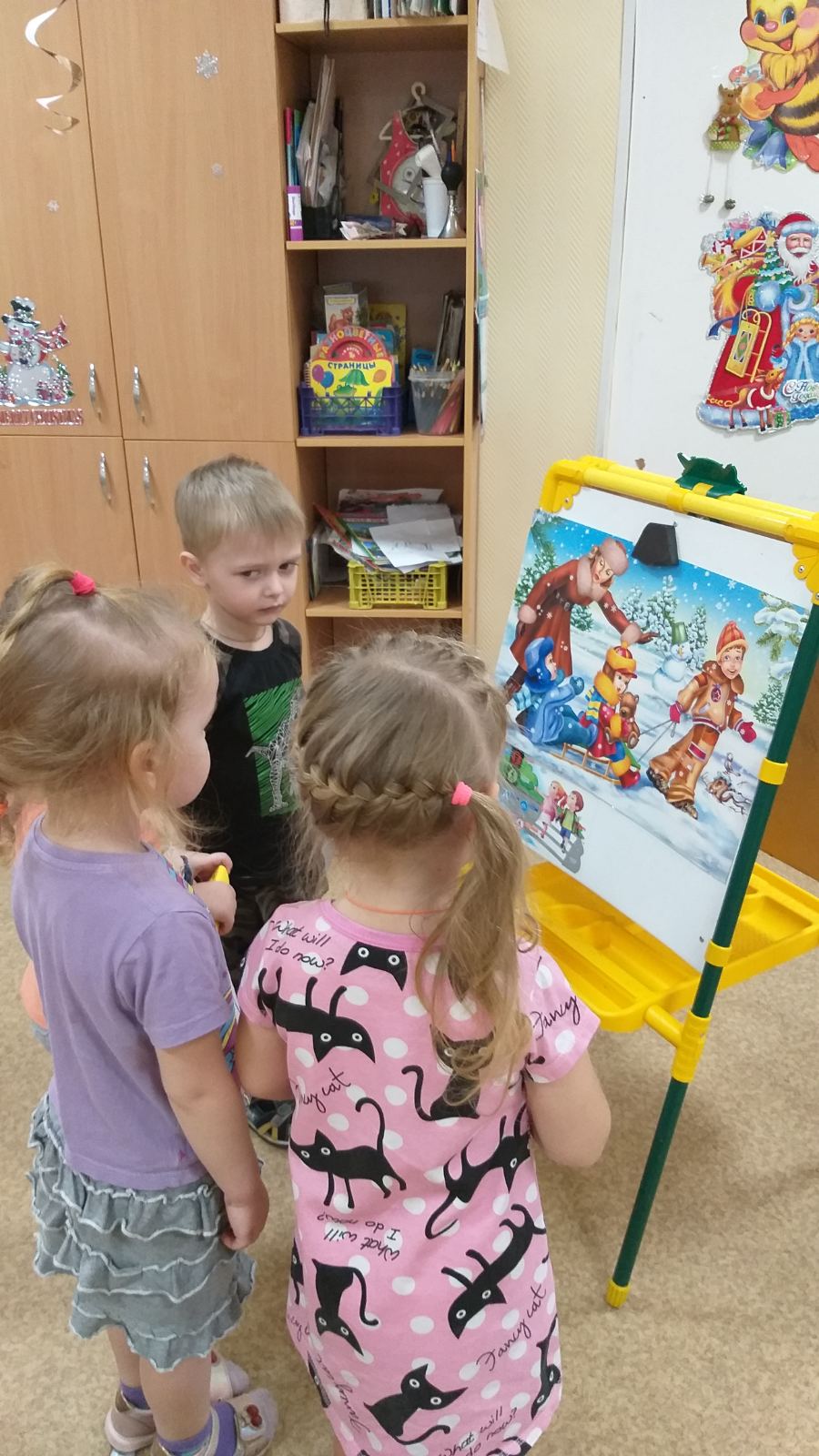Дошкольники разговаривали о зиме, путешествовали по участку детсада, знакомились с особенностями зимней природы. Дети рассматривали картины, слайды о зиме и зимних забавах, слушали чтение художественных произведений, например русские народные сказки «Снегурочка», «Зимовье зверей». Заучивали наизусть стихотворение А. Фета «Мама глянь-ка из окошка» и выразительно его рассказывали. Играли в подвижные игры: «Мороз - красный нос». С помощью экспериментальной деятельности ребята познавали свойства снега и льда.