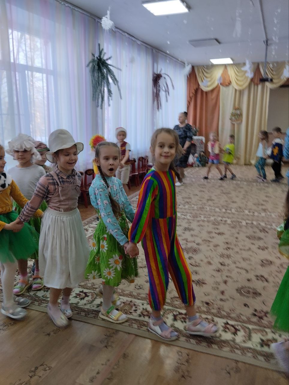 В нарядных костюмах водили хороводы, играли в народные игры, устраивали веселые переплясы, пели песни и частушки. Праздник получился веселым, шумным и зрелищным.