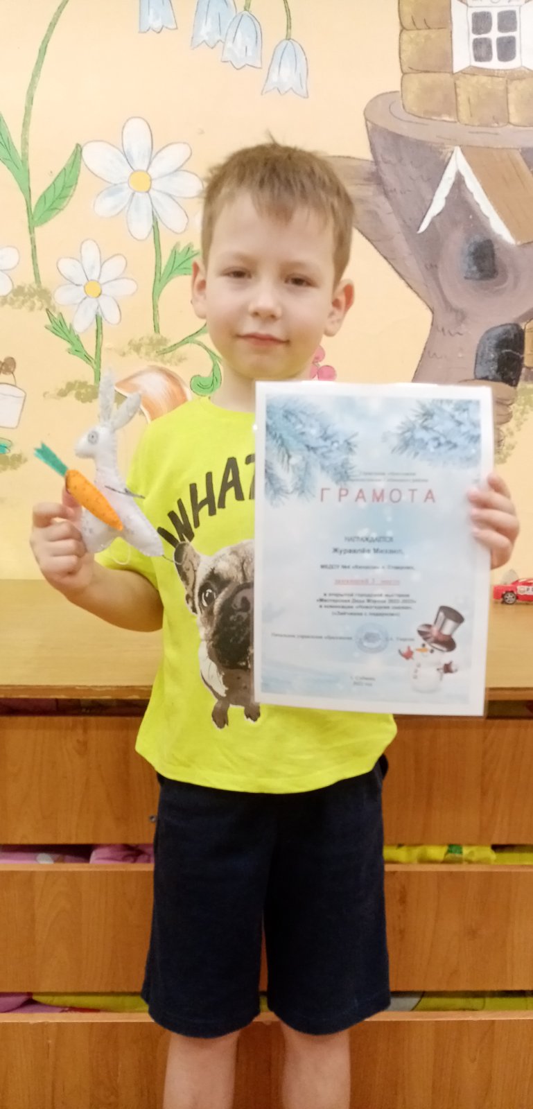 Журавлев Михаил (старшая группа) "Зайчишка с подарком" - 3 место в номинации "Новогодняя сказка".