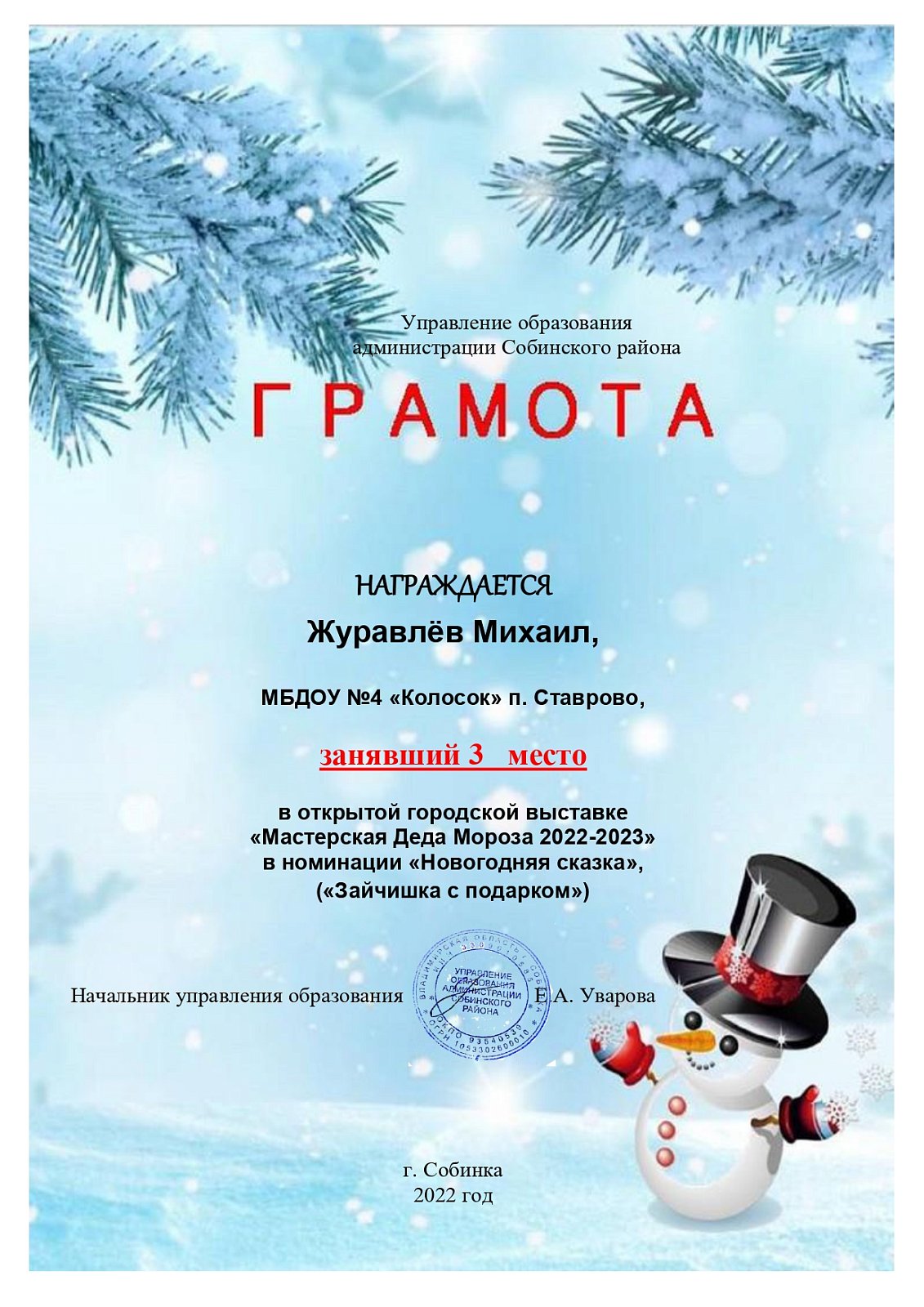 Воспитанники нашего детского сада приняли участие в районной выставке "Мастерская Деда Мороза 2022 - 2023". Отправлено было 9 творческих работ. Три поделки заняли призовые места: