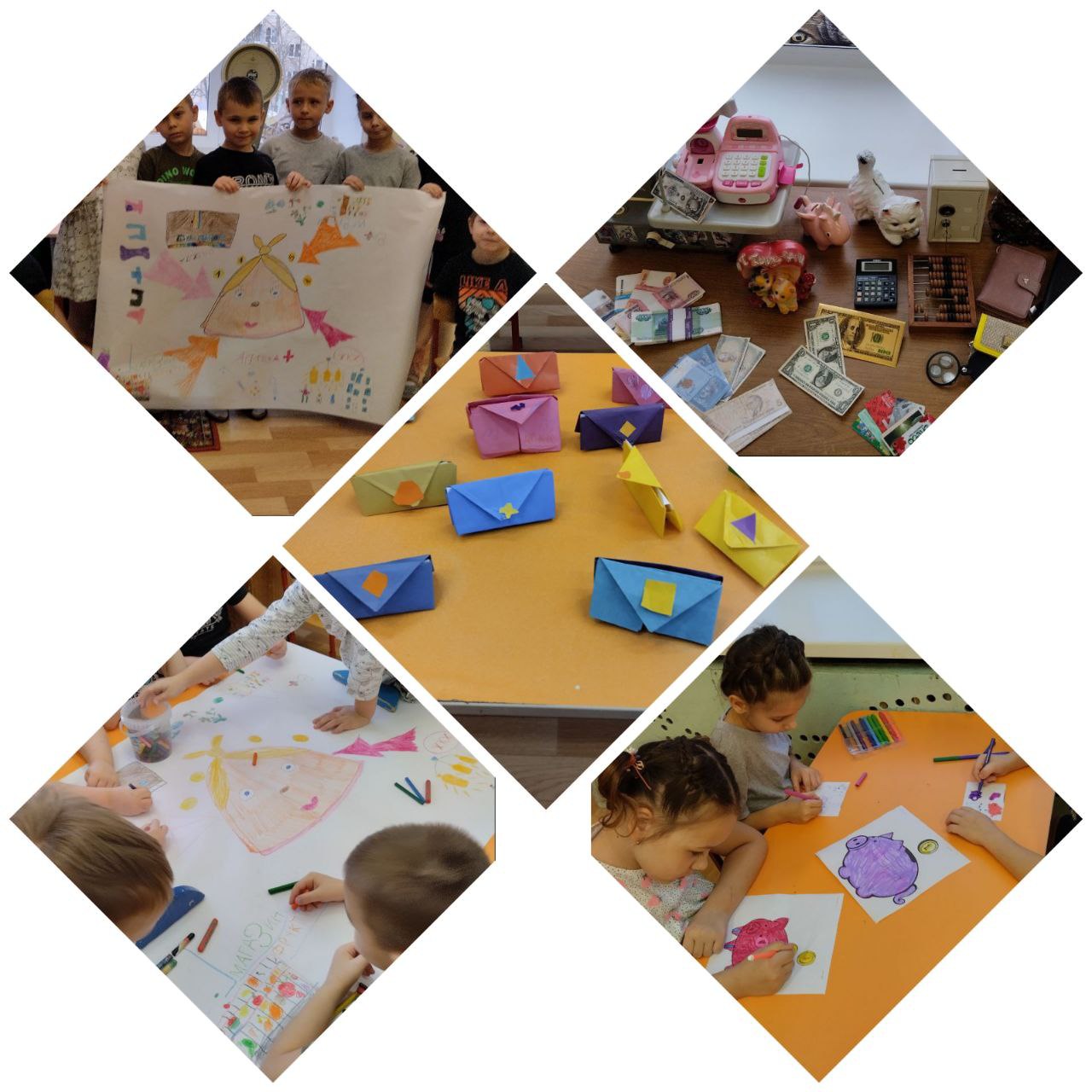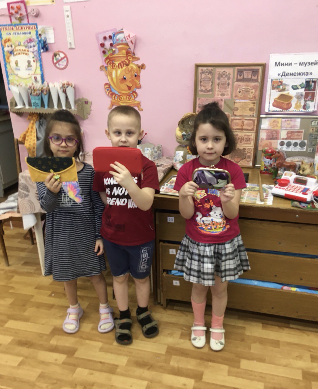 В эти дни ребят ожидали увлекательные и познавательные мероприятия, на которых они узнали: «Что такое деньги? Для чего они нужны? Много денег - это хорошо или плохо? Деньги нужно беречь или тратить?». На практических занятиях, в игровой форме, дошкольники попробовали себя в роли покупателя и продавца, научились планировать свои расходы и «зарабатывать деньги». Для погружения в атмосферу реальной жизни экономики и финансов, были предусмотрены проведение разнообразных дидактических и сюжетно-ролевых игр, экскурсии в ближайший магазин "За покупками", просмотры мультфильмов, видеороликов на тему: «Азбука финансовой грамотности». А так же с помощью воспитателей и родителей организован мини-музей, где особое место занимали кошельки и копилки ребят.