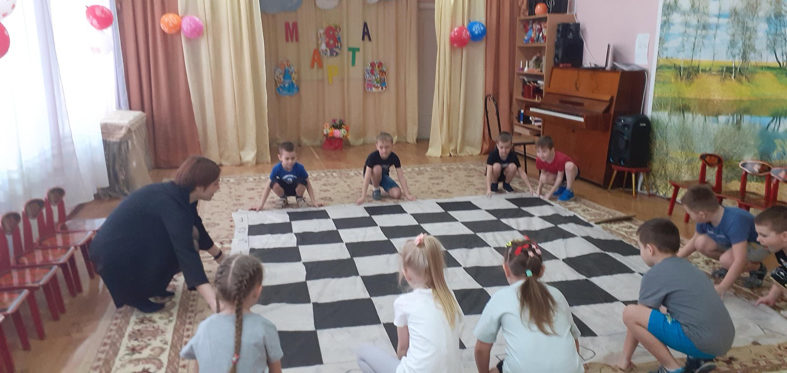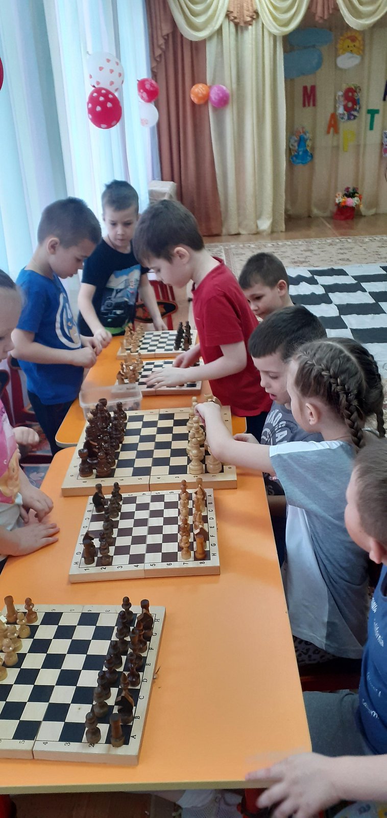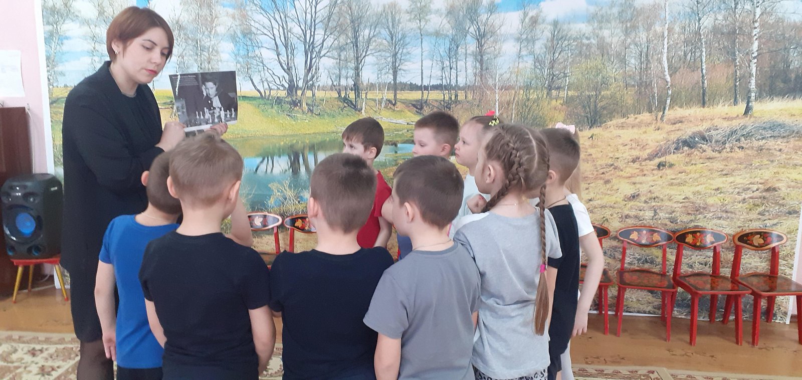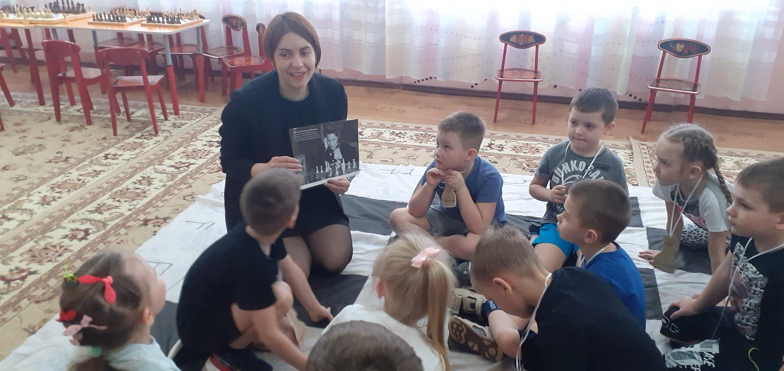 В детском саду №4 «Колосок» прошло памятное мероприятие с детьми подготовительной к школе группы в память о третьей в истории чемпионке мира по шахматам, заслуженном мастере спорта, международном гроссмейстере - Елизавете Ивановне Быковой. Мы гордимся нашей землячкой из села Боголюбово, ребята вдохновляются талантами великих людей и хотят им во всем подражать. Они отправились в путешествие по шахматной стране, где встретились с фигурами и пешками. Дети помогли навести порядок, и расставили всех по своим местам, вспомнив о важности каждой фигуры. Тем самым у ребята приобщаются к игре в шахматы, что не маловажно в развитии пространственного воображения, памяти, внимания и логического мышления.