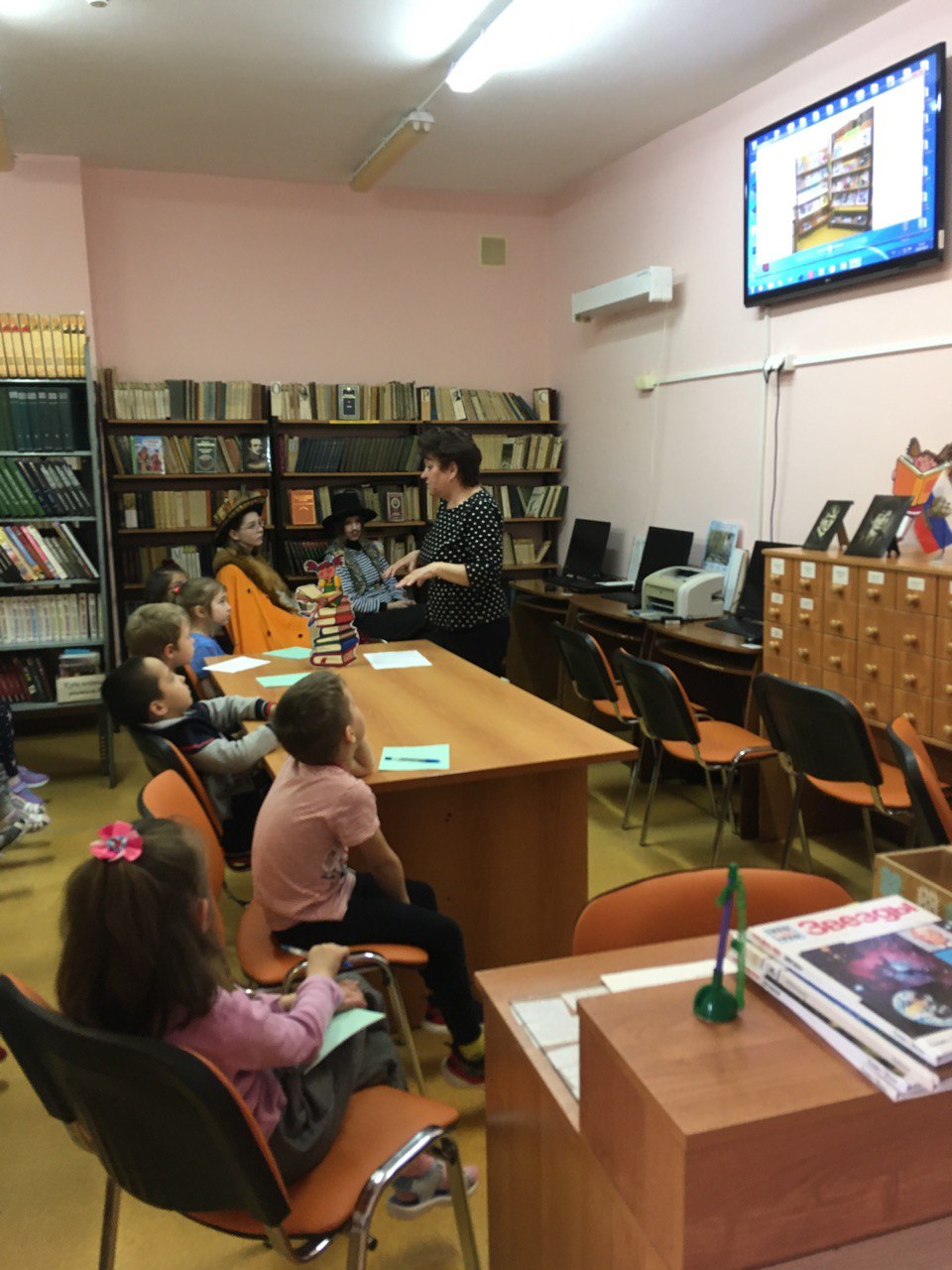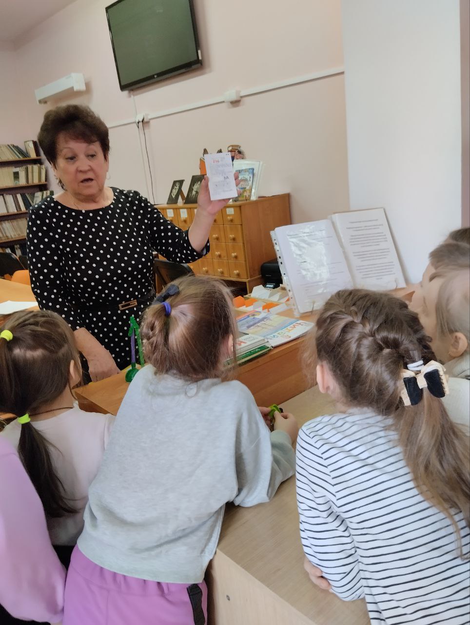 Тамара Викторовна показала детям познавательные презентации учеников СОШ "Моя библиотека дома".