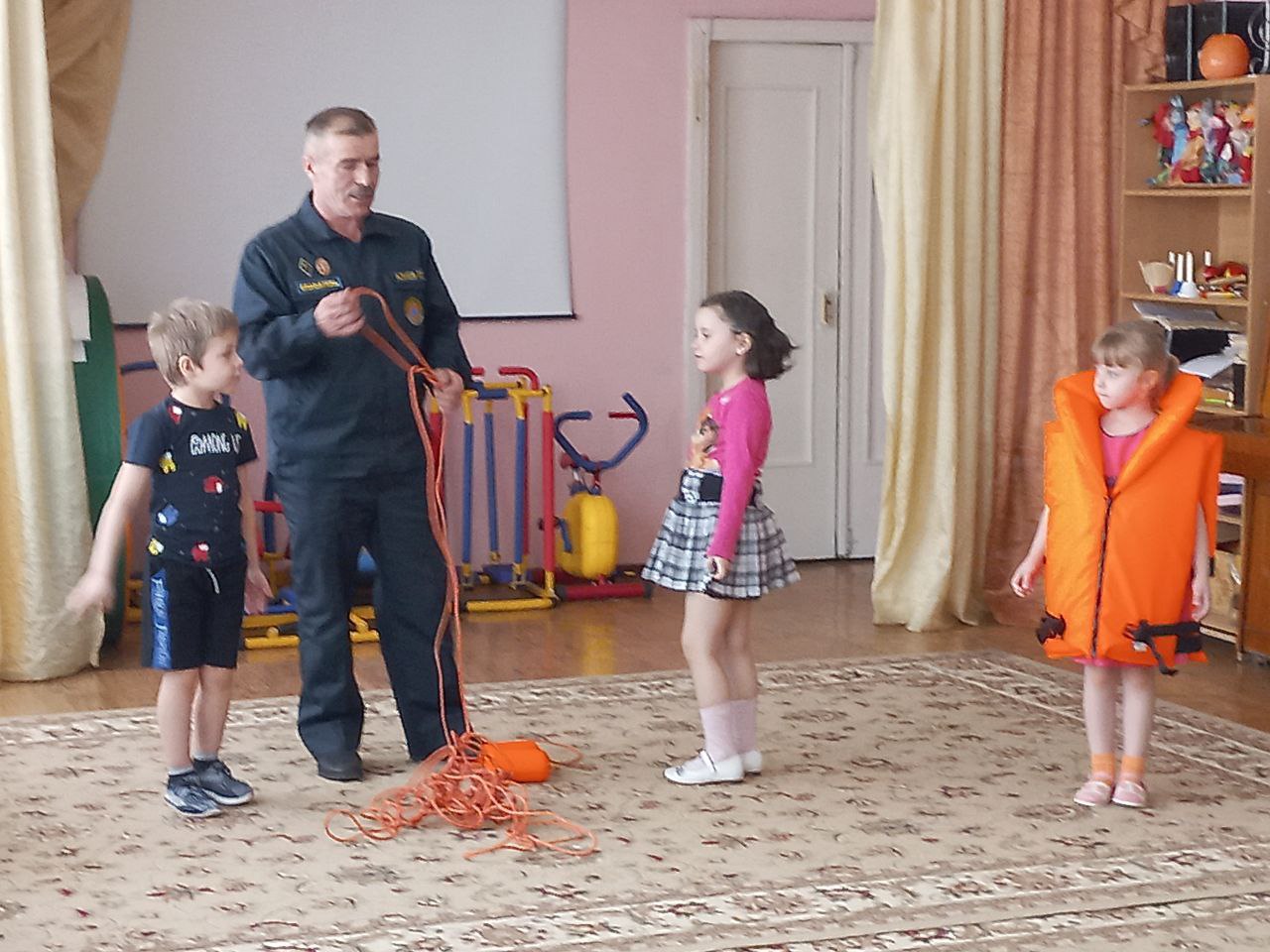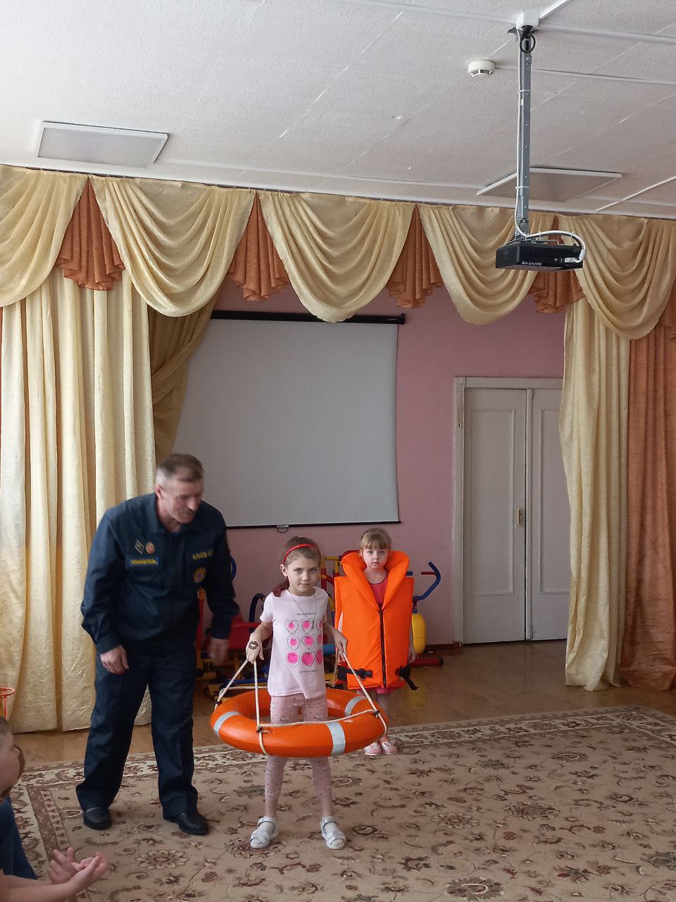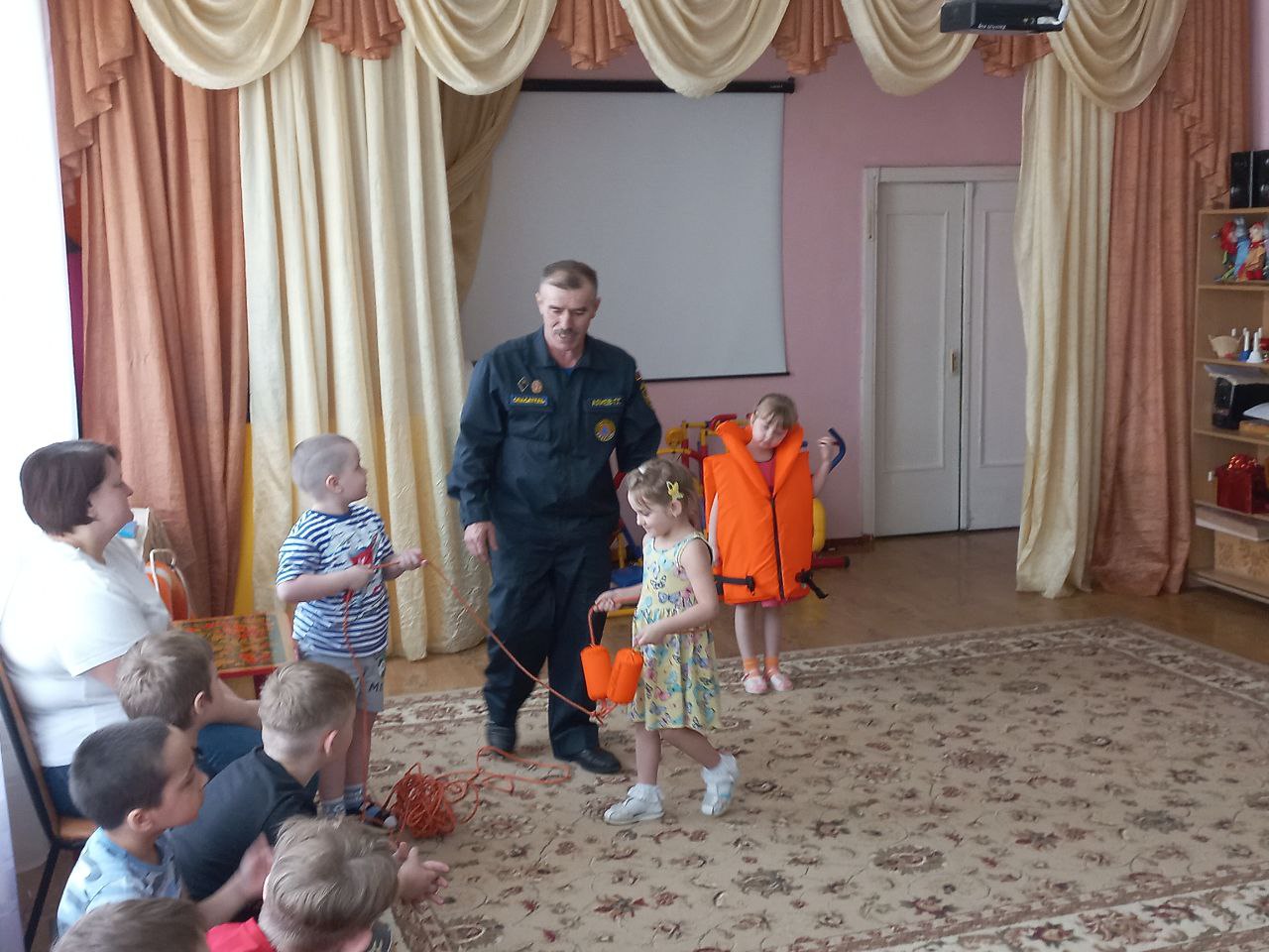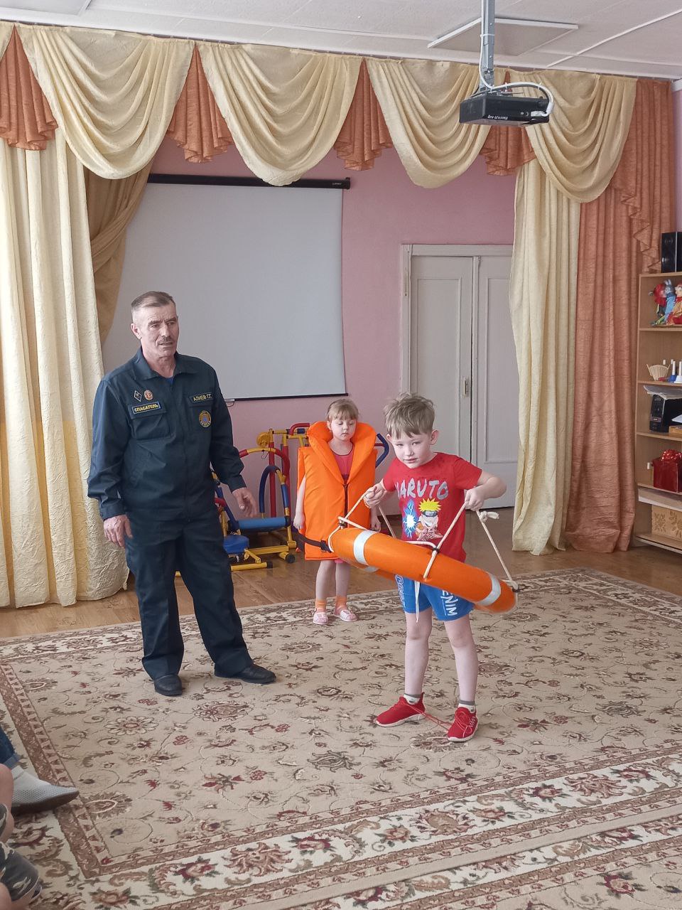 В рамках этих мероприятий организована встреча со спасателем ФКУГИМЦ центра МЧС по Владимирской области спасательной станции. Гасан Гасанбекович Алиев рассказал, какие опасности подстерегают людей на водных объектах, разъяснил правила безопасного проведения на воде в весеннее время и показал средства спасения людей на воде. Ребята узнали, что нужно делать и как вести себя, чтобы не попасть в опасную ситуацию.На стендах МБДОУ обновлёна наглядная информации для родителей, в групповых родительских чатах, была размещена памятка «Безопасность людей на водных объектах в весенний период».