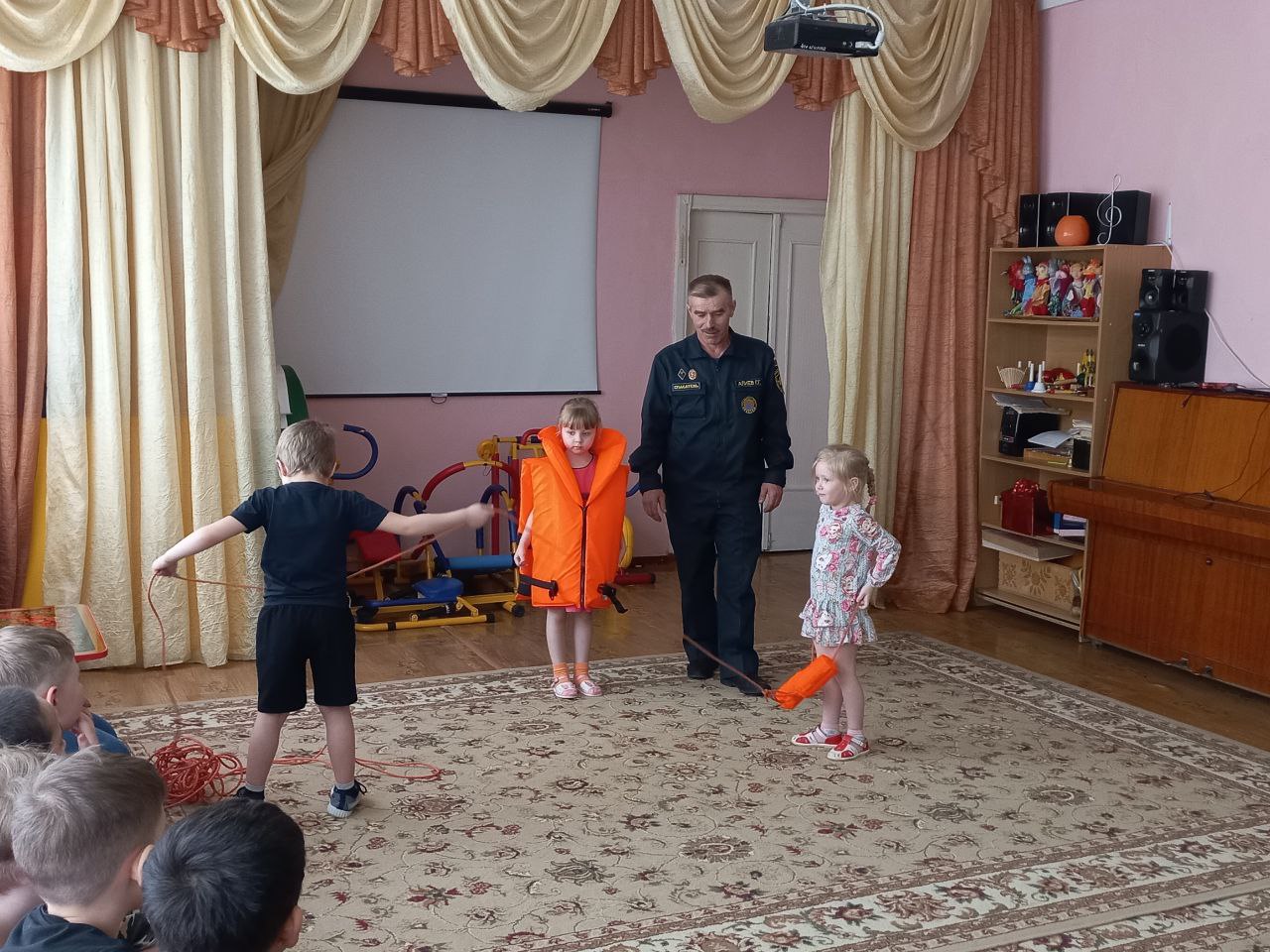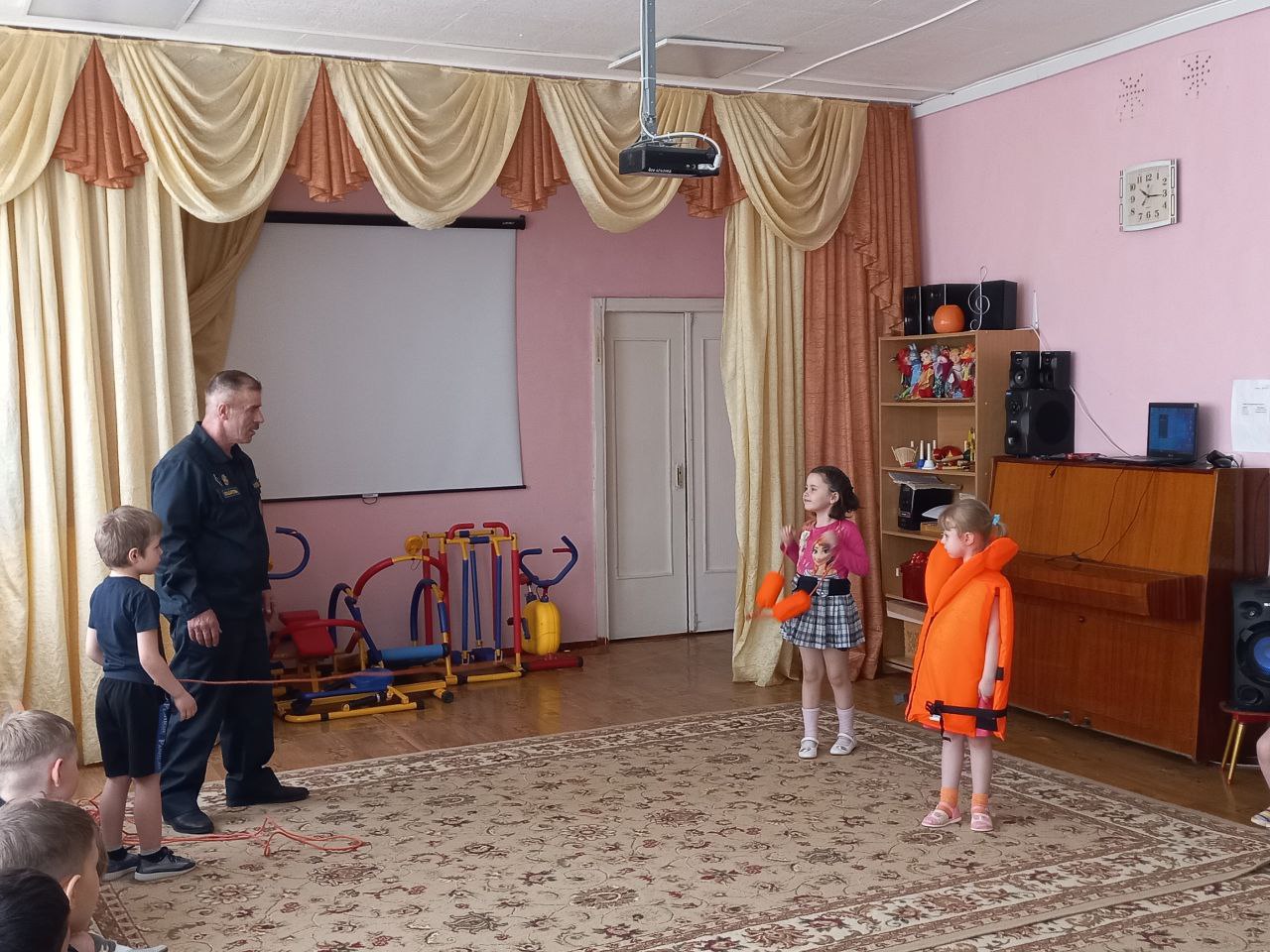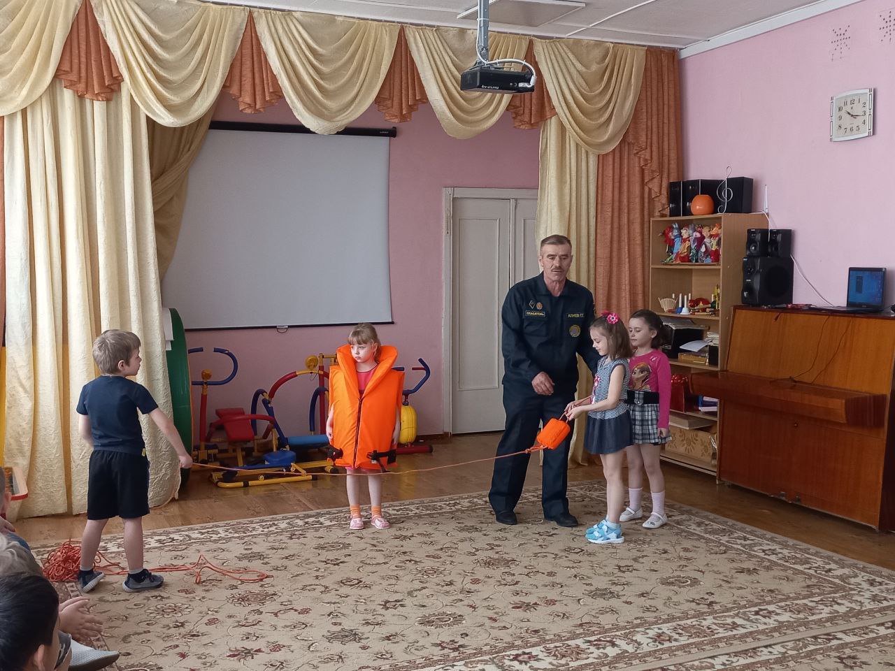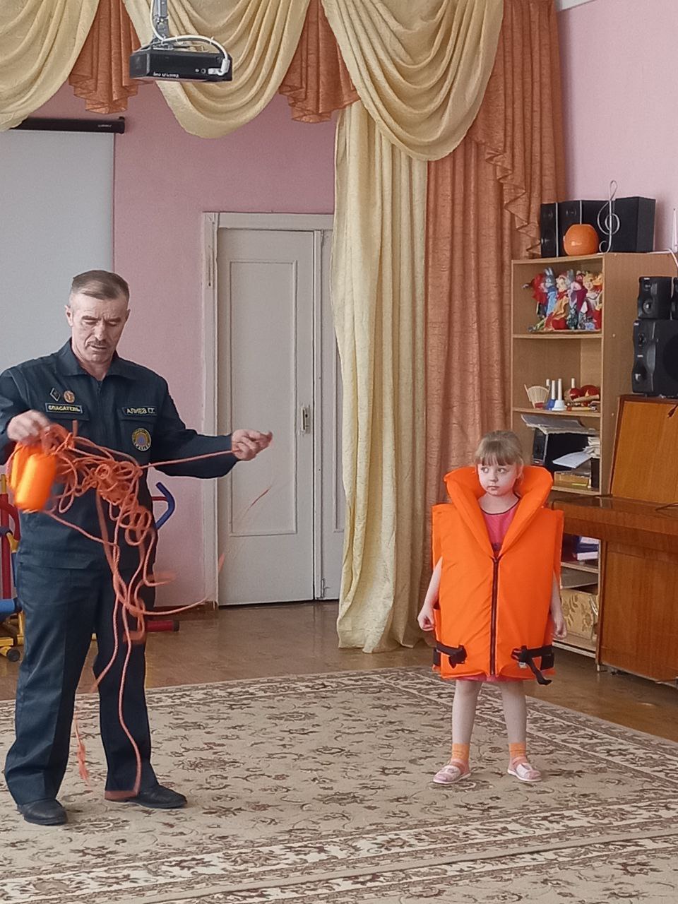В рамках этих мероприятий организована встреча со спасателем ФКУГИМЦ центра МЧС по Владимирской области спасательной станции. Гасан Гасанбекович Алиев рассказал, какие опасности подстерегают людей на водных объектах, разъяснил правила безопасного проведения на воде в весеннее время и показал средства спасения людей на воде. Ребята узнали, что нужно делать и как вести себя, чтобы не попасть в опасную ситуацию.На стендах МБДОУ обновлёна наглядная информации для родителей, в групповых родительских чатах, была размещена памятка «Безопасность людей на водных объектах в весенний период».