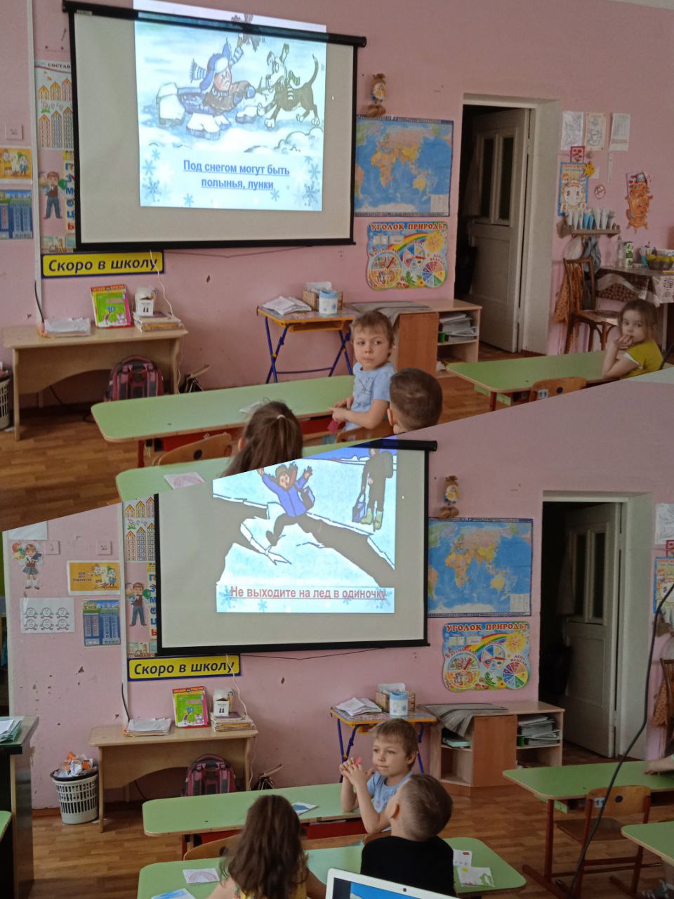 В нашем детском саду прошли мероприятия по профилактике безопасного поведения у водоёмов в рамках месячника "Тонкий лед". Педагоги беседовали с детьми о серьезной опасности, которую таят в себе замерзшие водоемы весной. Неоднократно ходили на экскурсию к реке. Проигрывали практические упражнения по спасению утопающего "Мы- спасатели" . Для закрепления знаний организовали выставку рисунков: «Осторожно, тонкий лед!».