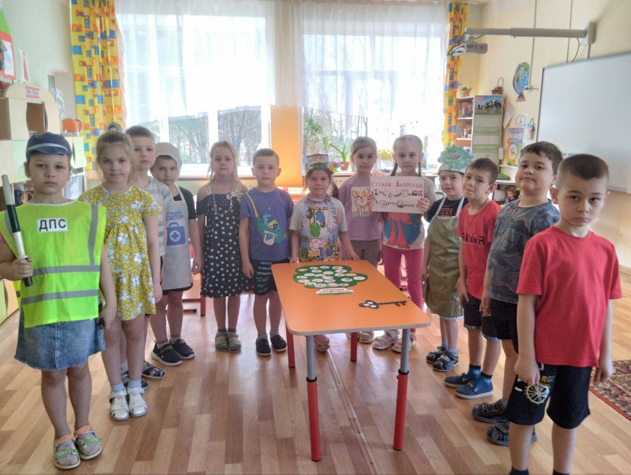 День здоровья отметили ребята и старших групп. Они отправились на квест приключения за ключом здоровья. Ребята путешествовали по катре и встретились с Микробом, доктором Гигиены, Закалякой и посетили станцию Спортивная. Вместе подвели итоги и ответили на вопрос: "Как сохранить свое здоровье?", составив план - дерево Здоровья.