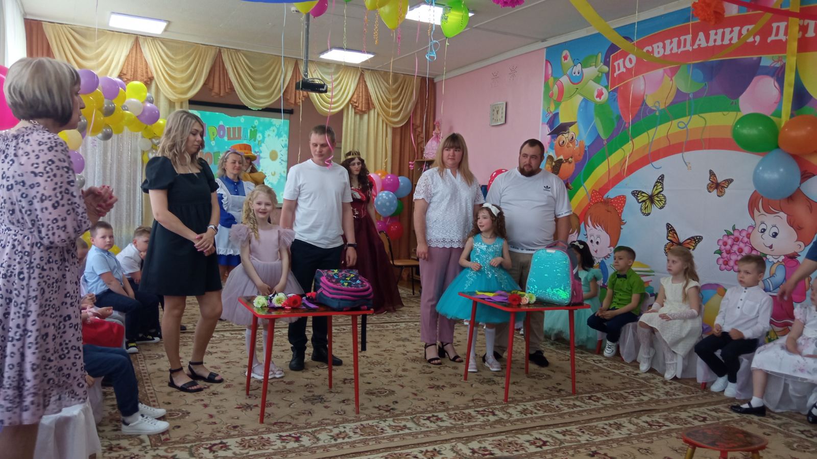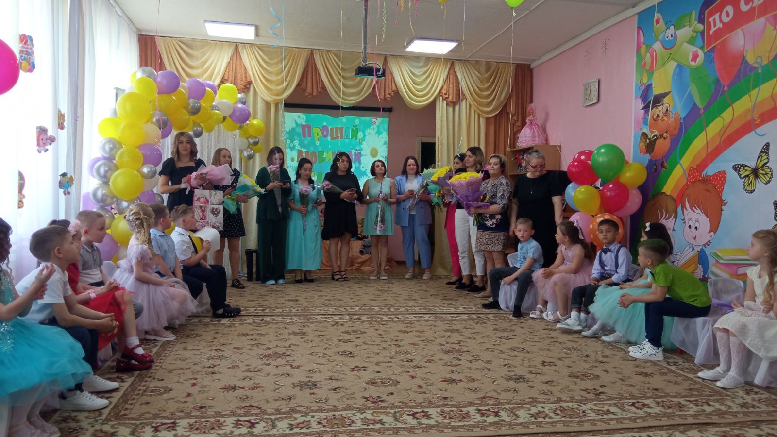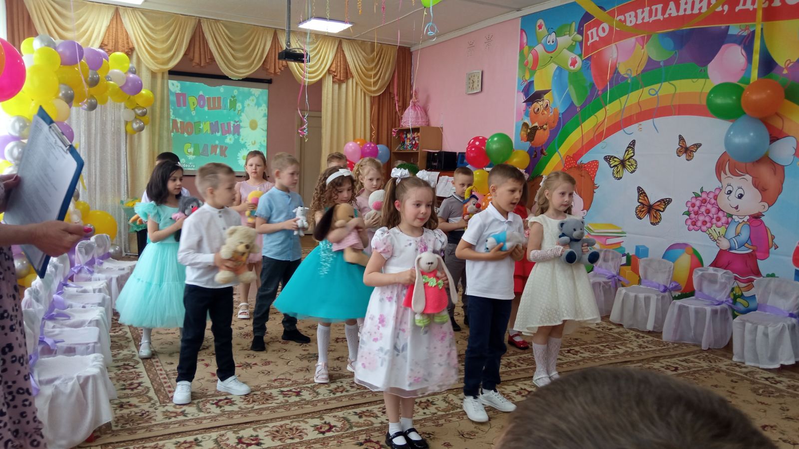 Традиционно в конце праздника детей с окончанием детского сада поздравила заведующая Рискова Наталья Владимировна, вручила выпускникам дипломы и подарки, а родители выразили благодарность сотрудникам песней "Районы кварталы".