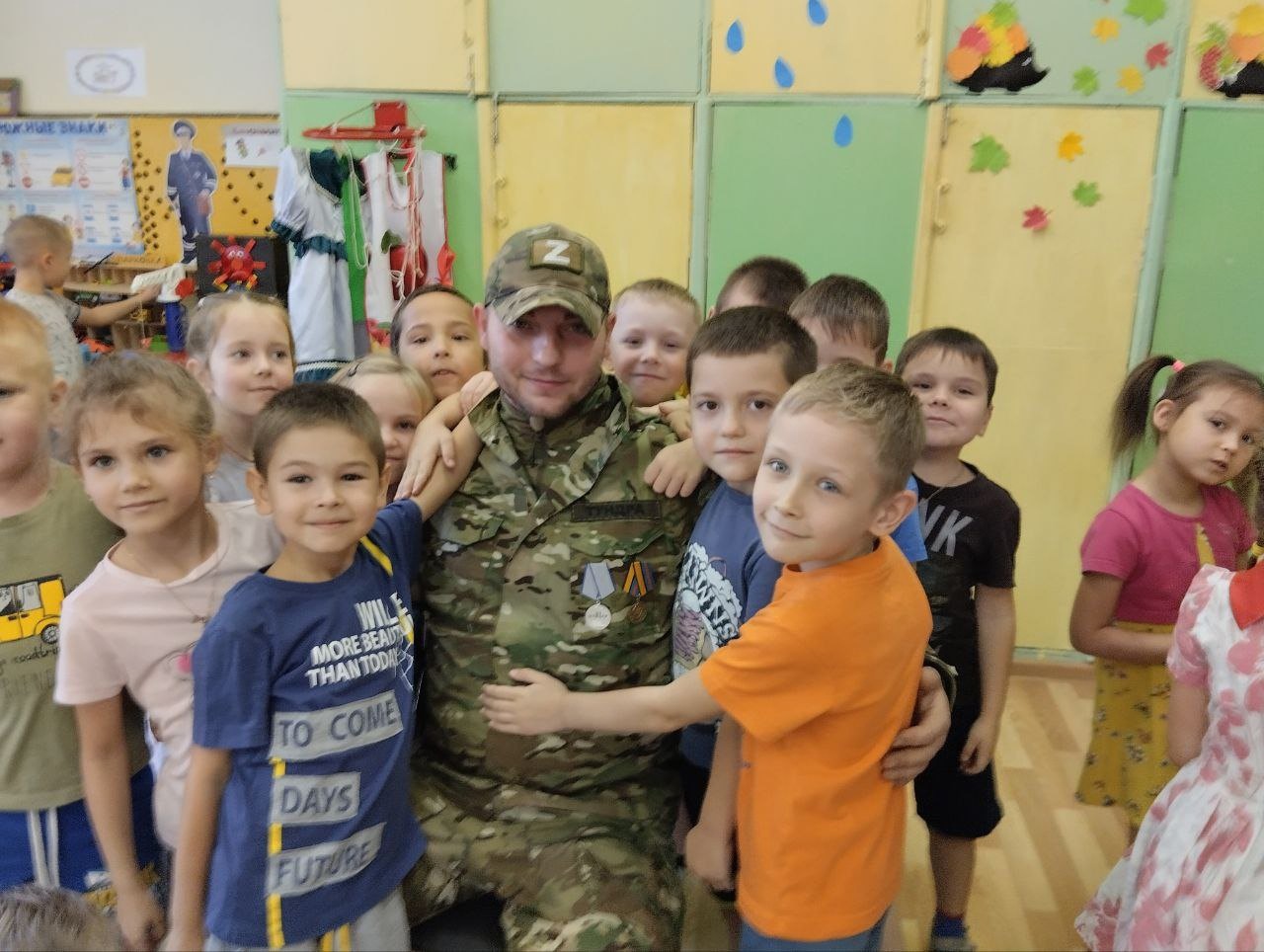 В нашем саду есть дети, чьи папы тоже участвуют в СВО. Вячеслав поддержал ребят, и обещал при первой возможности передать им привет.