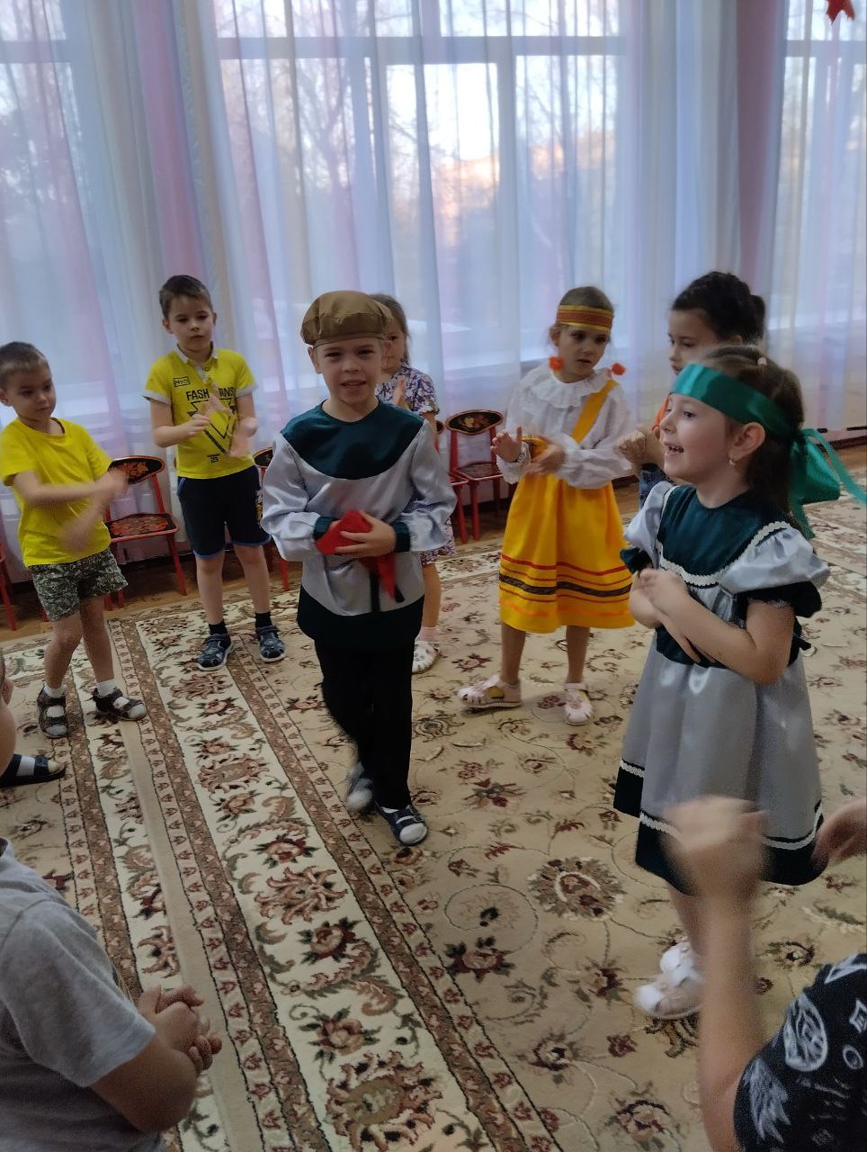 В течении этой тематической недели они рассказывали о своей Великой Родине, сравнивали национальные костюмы, играли в хороводные игры, стоили Кремль и создали коллективную аппликацию. ????????????????????????????????????????????????