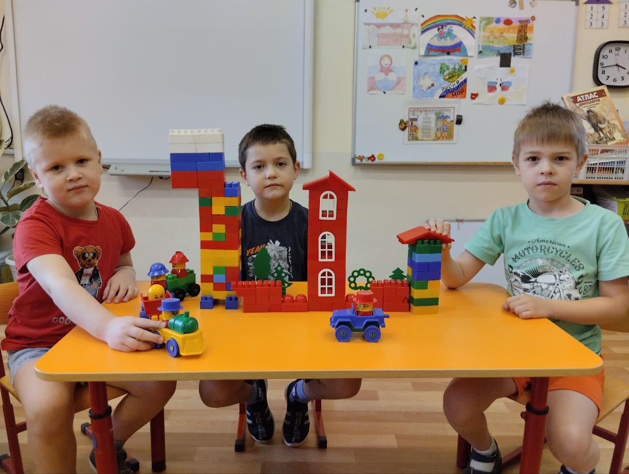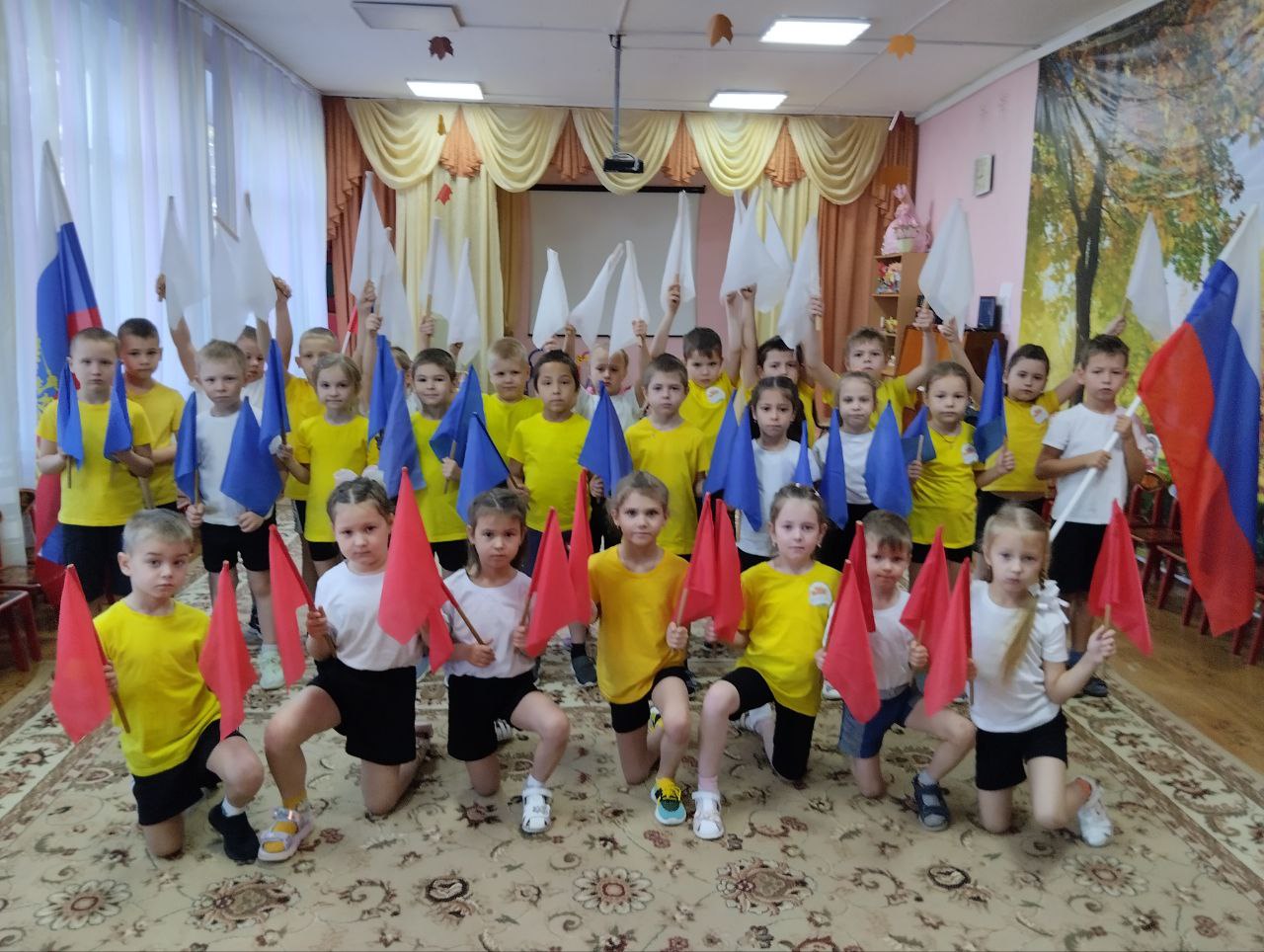 Они смастерили знамя, коллективную аппликацию и собрали символы России.