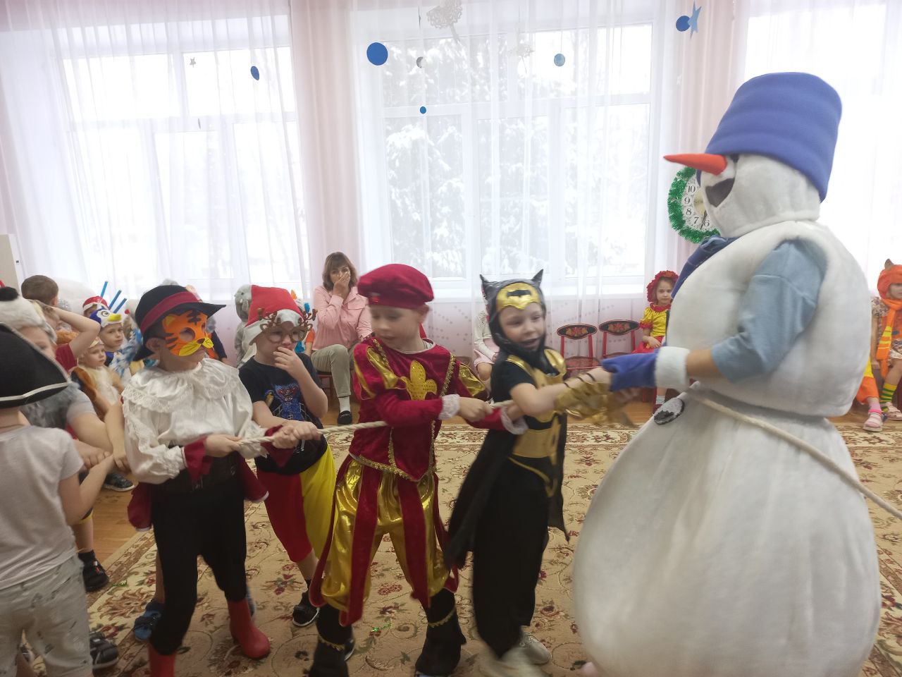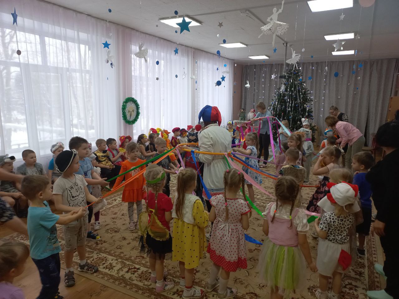А сегодня на праздник в гости к ребятам приходил веселый скоморох, снеговик, а также Баба Яга. Наша «Коляда» была насыщена сказочной атмосферой, веселыми песнями, хороводами вокруг ёлки, задорными играми. Праздник не только принес радость нашим воспитанникам, но и предоставил возможность прикоснуться к традициям и обычаям русского народа, самим прочувствовать всю прелесть народных празднеств и гуляний.