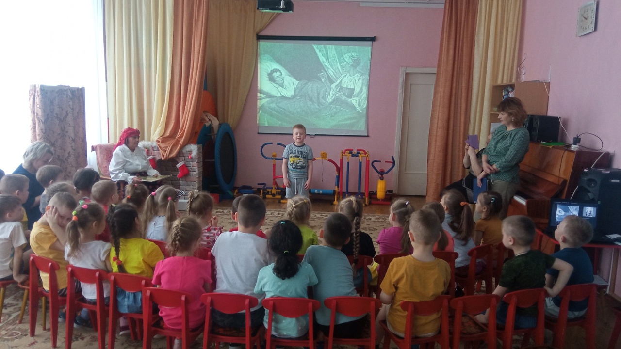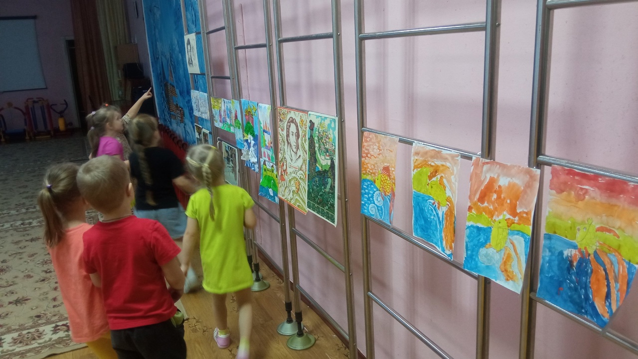 Ребята с интересом рассматривали фотографии Александра Сергеевича в детстве, его родителей, жену Наталью, совместных детей. Играли в любимые игры поэта "Платочек" и "Горелки", участвовали в викторине " Угадай сказку" и конечно чтили его память стихами.