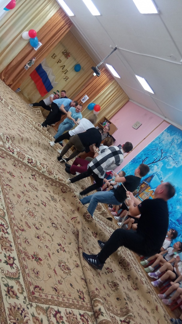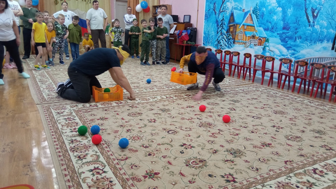 Дети вместе с папами, дедушками и братьями участвовали в соревнованиях.