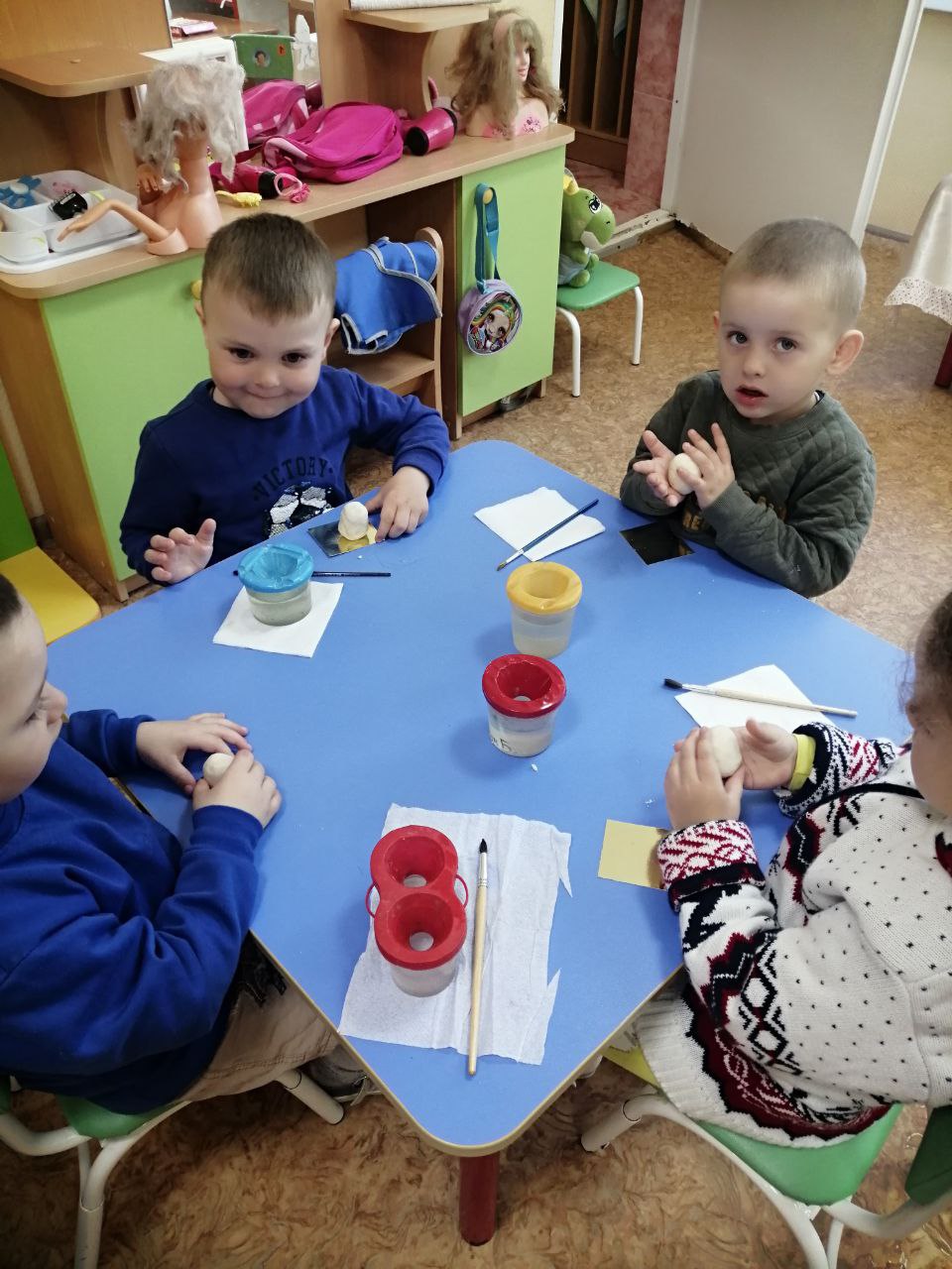 Младшие ребята группы Светлячки готовились к этому дню, слепили из соленого теста яйца, а затем их расписали.