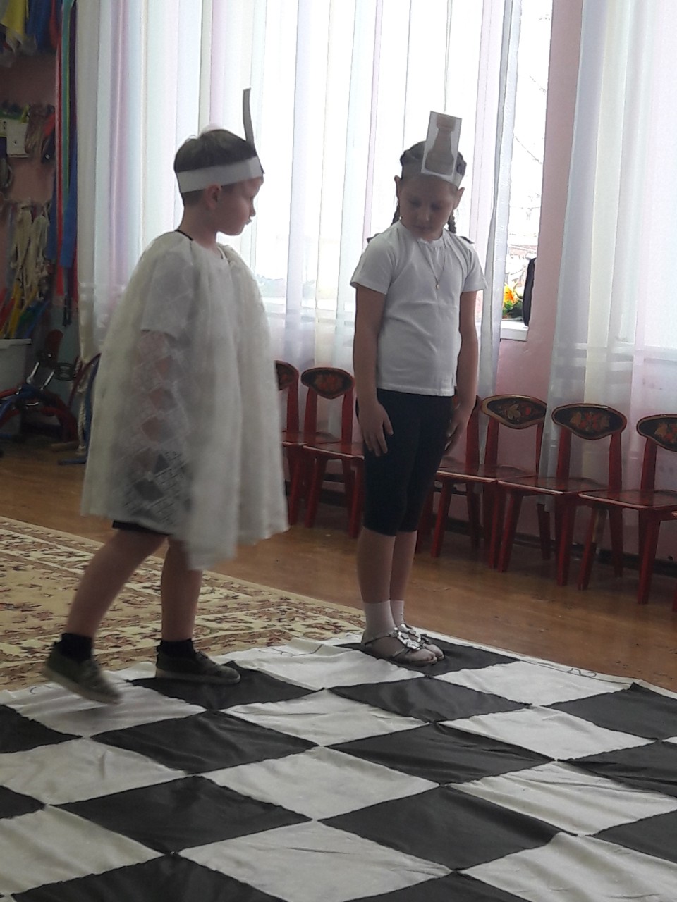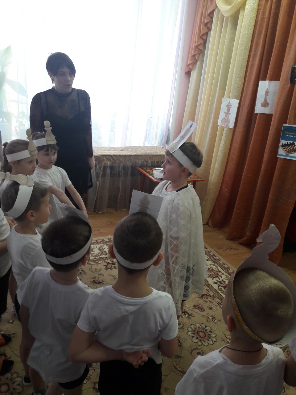Ребята старшей и подготовительной к школе групп были в ролях шахматных фигур. Они показали и рассказали правила игры в шахматы. С удовольствием отвечали на вопросы викторины.