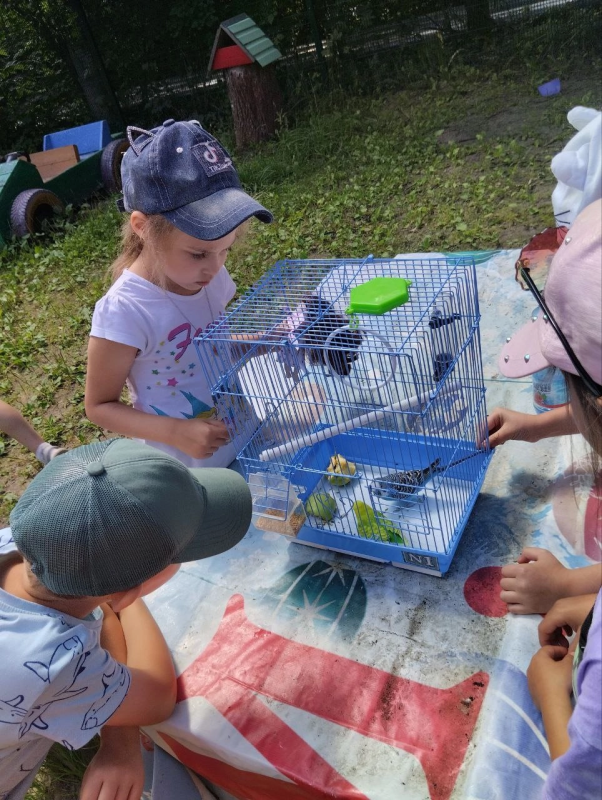 В течение дня они могли наблюдать за попугаями Кешой и Ритой и хомяком Карасиком, которые были гостями нашего детского сада.