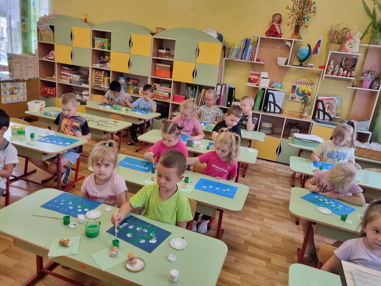 С интересными приемами рисования и лепки познакомили ребят старшей группы Пчелки преподаватели по ИЗО. И уже через несколько минут радовались результатом своей работы.