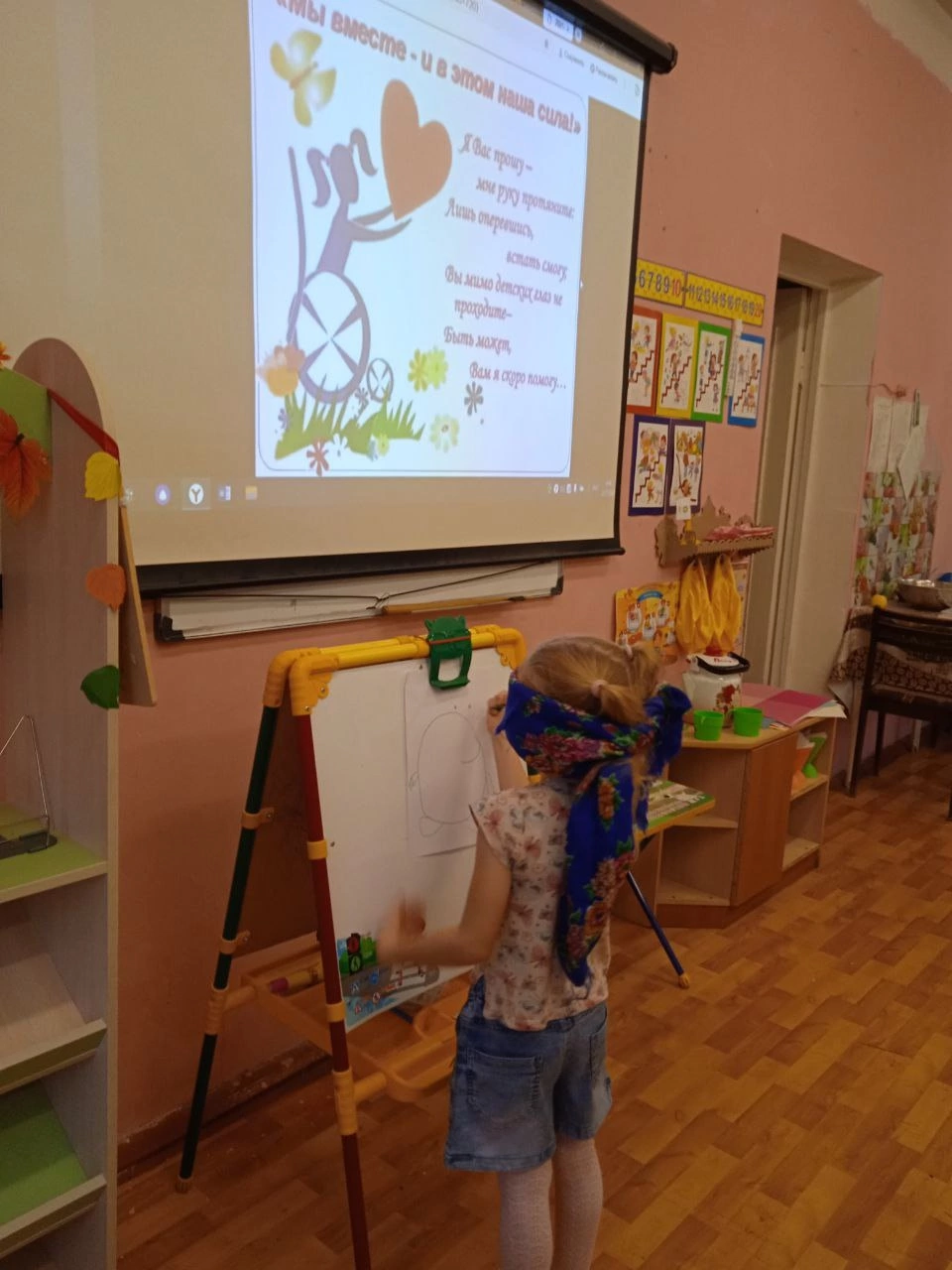 В рамках Всемирного дня инвалидов с ребятами старшей группы прошла беседа "Мир спасает доброта", целью которой было воспитание у детей таких качеств, как сострадание, доброжелательность, толерантность к людям с ограниченными возможностями здоровья, умение понять горе другого человека и посочувствовать ему, желание оказать помощь тому, кто в ней нуждается.