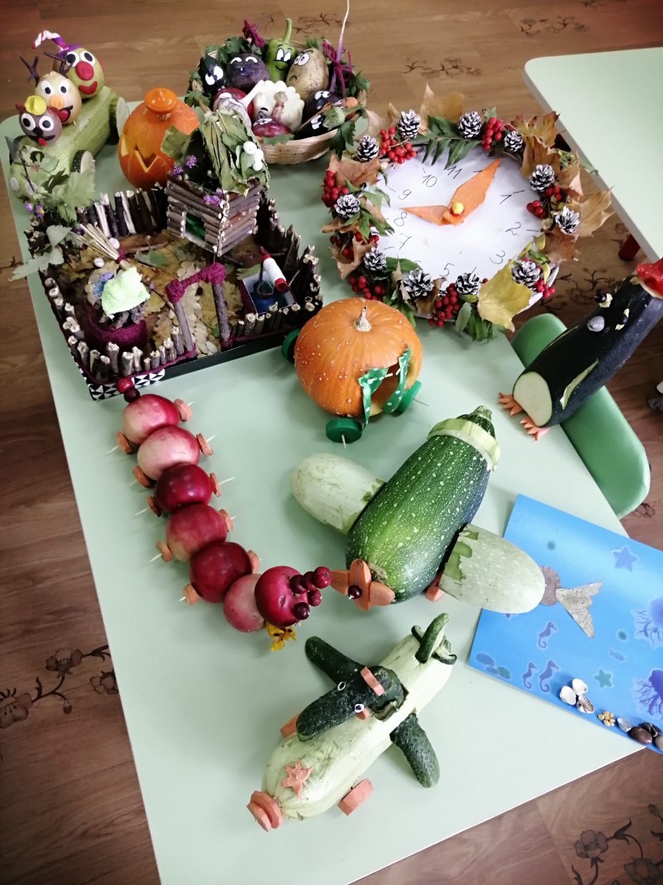 Наступила красивая, золотая пора, название, которой "Осень". В садах и огородах выросли плоды нелегких трудов человека. Традиционно, каждую осень в нашем детском саду проводятся выставки поделок из даров огородов и садов "Чудо с грядки". Включив фантазию и терпеливость, родители вместе с детьми изобрели настоящие шедевры.