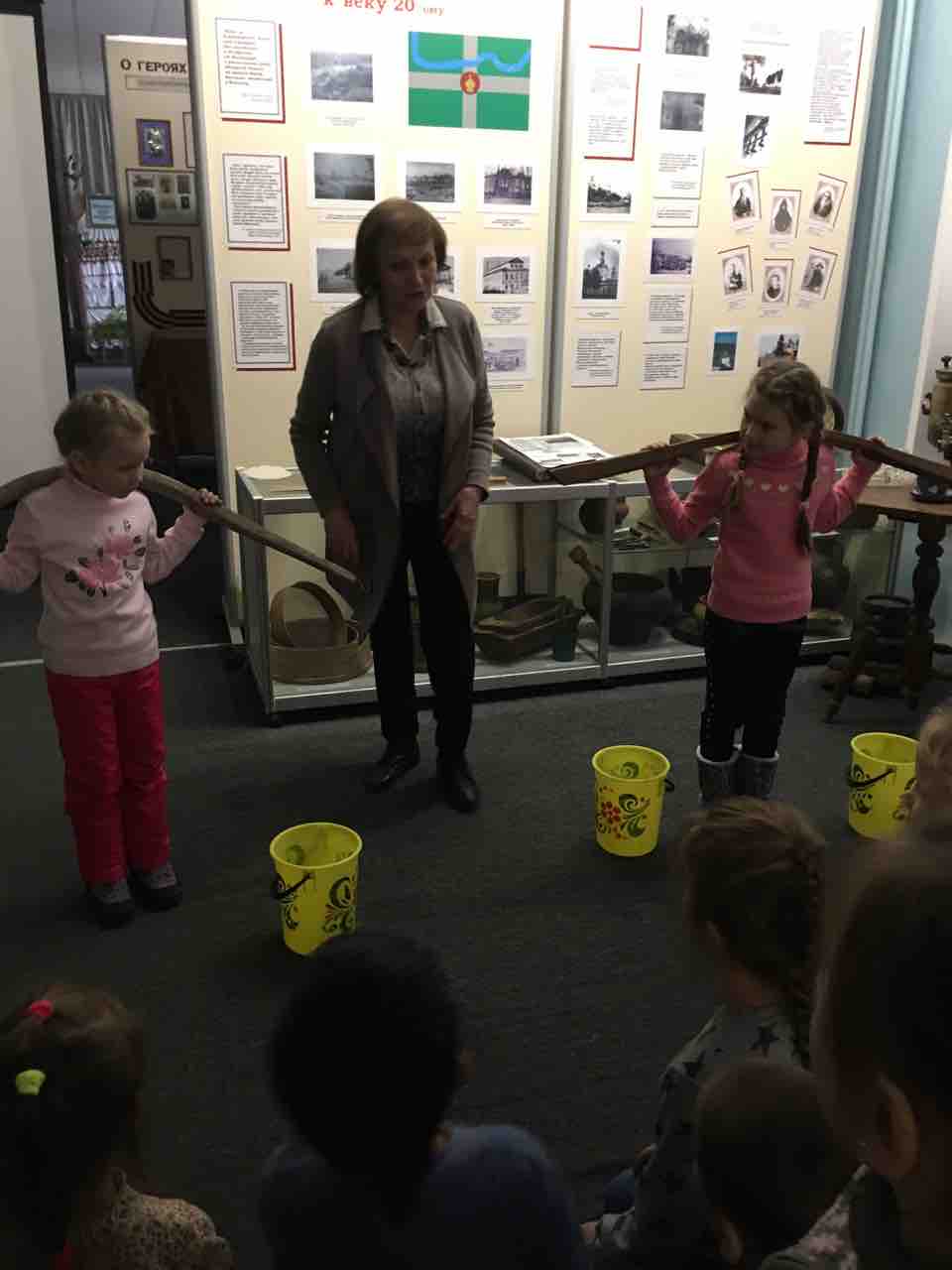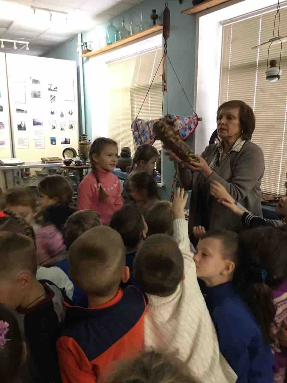 29 и 31 октября ребята старшей и подготовительной к школе группы посетили краеведческий музей в ЦКиС п.Ставрово. Экскурсовод рассказал историю нашего народа; в каких домах жили, из чего строили; какая была посуда, транспорт, мебель в далекие времена. Познакомились с новыми понятиями: люлька, каток, чугунок, ухват, ступа, коромысло. Дети с большим интересом слушали экскурсовода, задавали вопросы, рассматривая экспонаты.