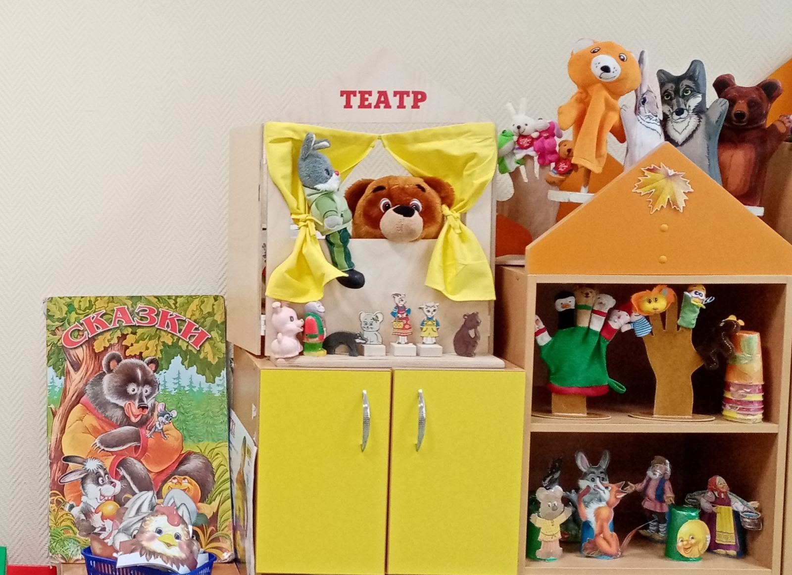 На старшей группе №1 воспитатели Терешкина Т.Е., Каримова Е.К. обновили настольный театр: дети с удовольствием обыгрывают разные сказки: «Теремок», «Колобок», «Красная шапочка», «Волк и семеро козлят», «Маша и медведь» и др.